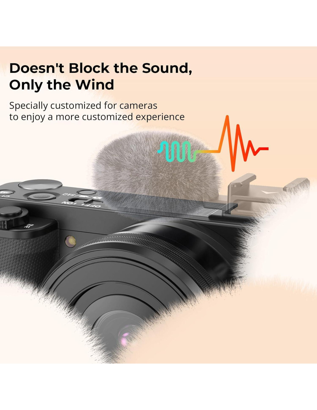 - Libre de ruido del viento: El material de pelaje sintético del parabrisas dedicado y el diseño interior engrosado para una reducción efectiva del ruido durante la grabación al aire libre sin dañar la calidad del sonido.