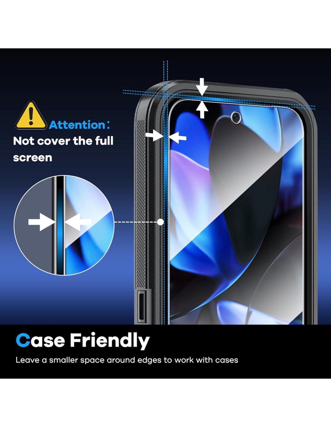 - [Instalación Más Fácil & Sin Burbujas] Equipado con el marco de alineación que le ayuda a aplicarlas de manera muy simple y rápida sin burbujas y fallos incluso si nunca lo ha hecho antes. El paquete viene con todo lo que necesita, como 4 protectores de pantalla para Pixel 9/Pixel 9 Pro, 4 toallitas, 4 removedores de polvo, 1 herramienta de instalación, 1 guía de instalación, 1 paño de limpieza, 1 alfombrilla antideslizante