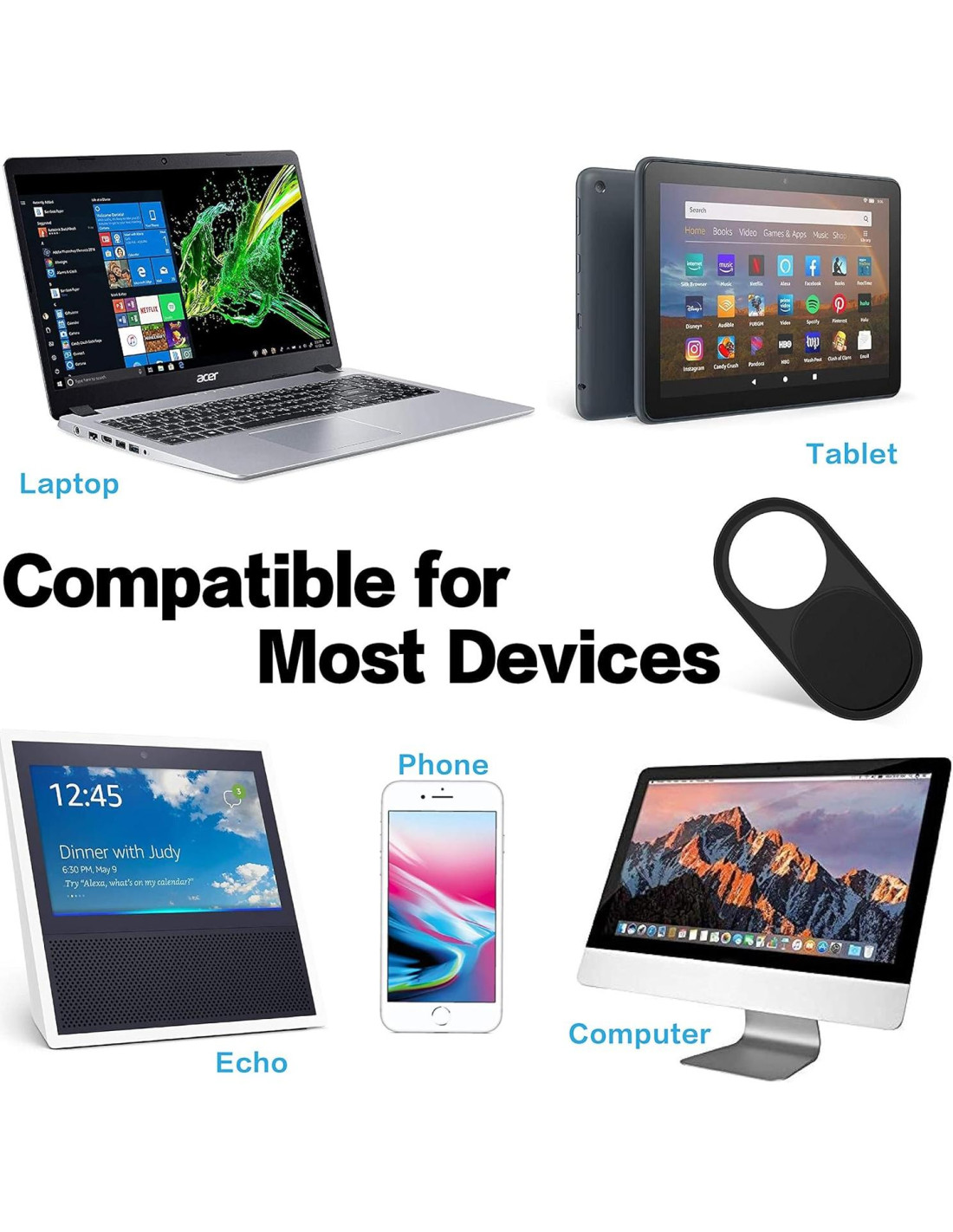- Compatible con la Mayoría de Dispositivos: Cubiertas de webcam compatibles con MacBook Pro (no aplicable a MacBook Pro de 16 pulgadas (40.64 cm) solamente), MacBook Air, Mac, computadoras portátiles, iPad Pro, tabletas, PC, computadoras, todo en uno, iPhone 8/8 Plus/iPhone 7/7 Plus/6/6 Plus SE, echo/show spot, modelo 3 cámara web