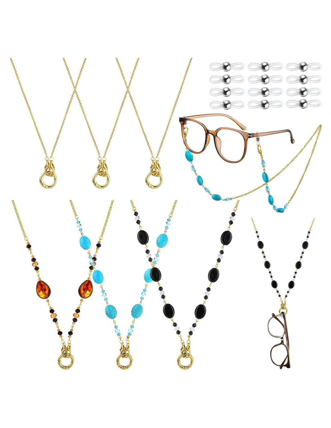 - Material de Calidad: las cadenas de gafas están hechas de acero inoxidable, y las cuentas son de cristal; No te preocupes si tienes piel sensible, el anillo de collar de gafas para mujeres es seguro para ti; No volverán tu cuello verde, incluso en condiciones húmedas o cuando sudas