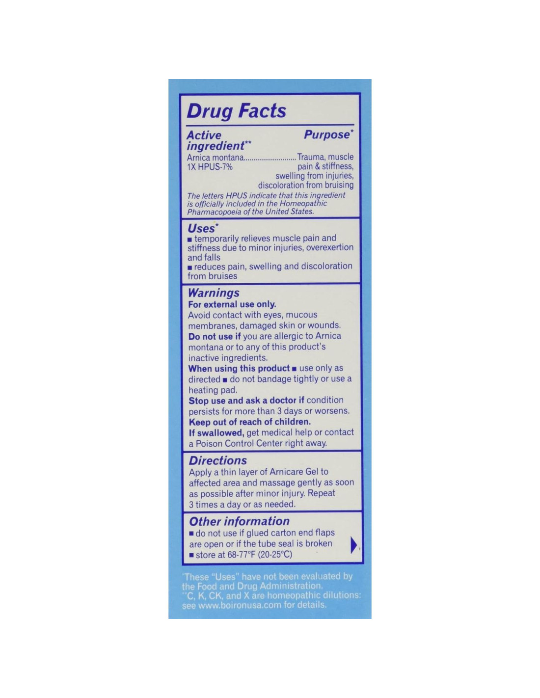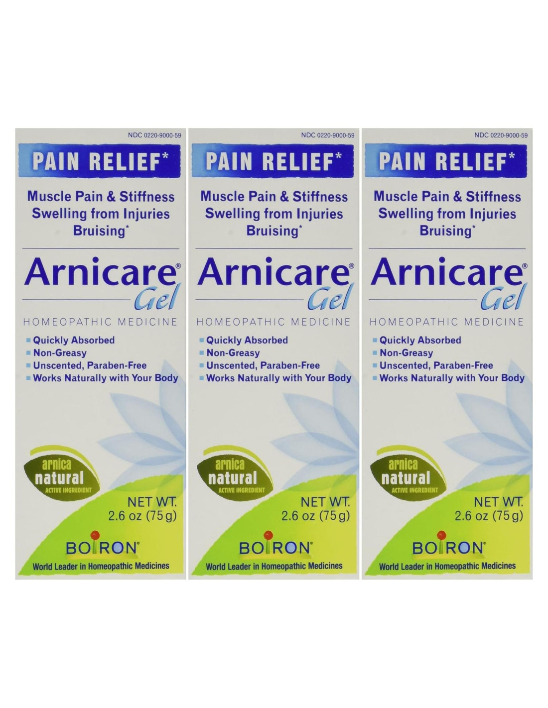 Ingrediente Activo: Árnica montana 1X HPUS 7%. (Las letras HPUS indican que el componente en este producto está oficialmente monografiado en la Farmacopea Homeopática de los Estados Unidos.) Propósito: Árnica montana 1X HPUS Alivia el dolor y la rigidez muscular, la hinchazón por lesiones, la decoloración por moretones. NDC 0220-9000-59 (Etiqueta de Medicamento OTC Humano) *Este producto no afirma ser una cura para ninguna enfermedad o condición.