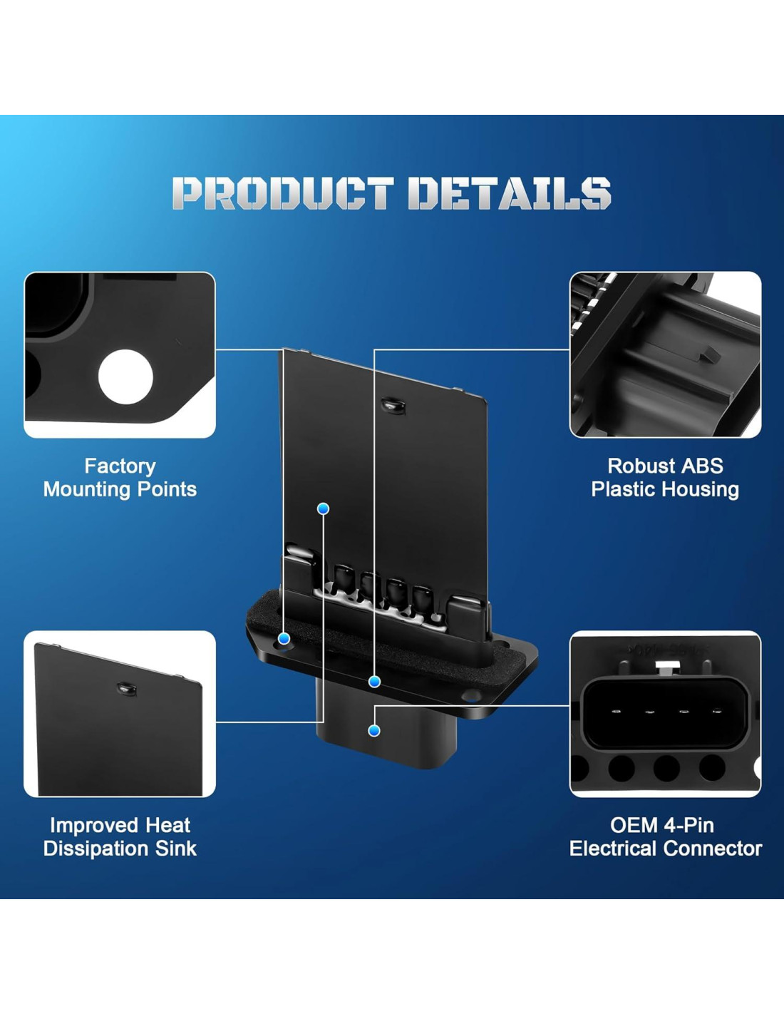 - Ajuste OEM e instalación fácil: Nuestro resistor del motor del ventilador Ford es un reemplazo directo de la pieza original, cumple o supera los estándares OEM, procedimiento de prueba estricto y materiales superiores que proporcionan máxima resistencia y durabilidad. El módulo del resistor se encuentra en el lado del pasajero inferior. Simplemente quita los tornillos que aseguran el viejo resistor, retira el ensamblaje del resistor e instala el nuevo resistor en su lugar. No se requieren herramientas o habilidades especiales