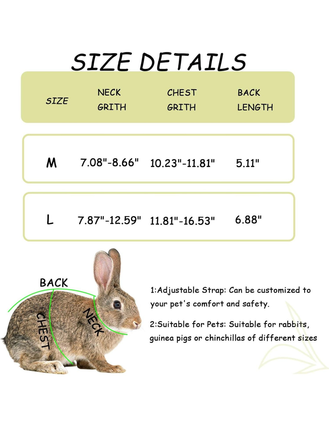 - Ajuste perfecto para mascotas pequeñas: Tamaño M: Cuello 17.95 cm-21.95 cm, Pecho 26.00 cm-30.00 cm. Diseñado para mascotas pequeñas como conejos, cobayas, chinchillas, etc.