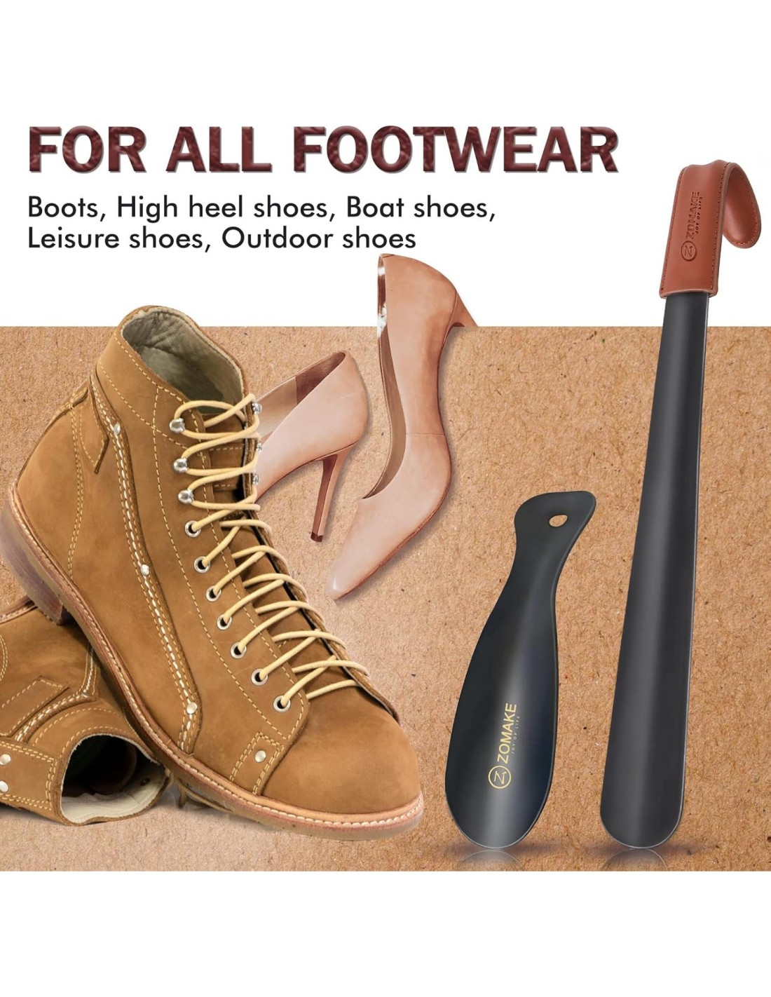 - Cuerno de Zapato con Mango Largo: El cuerno de zapato con mango largo ZOMAKE mide 42 cm de largo. Facilita ponerte los zapatos/botas ya sea de pie o sentado sin necesidad de agacharte, un imprescindible para ancianos, embarazadas o discapacitados y aquellos con dolor de espalda, dolor de cadera, artritis, ciática u otros problemas de movilidad.