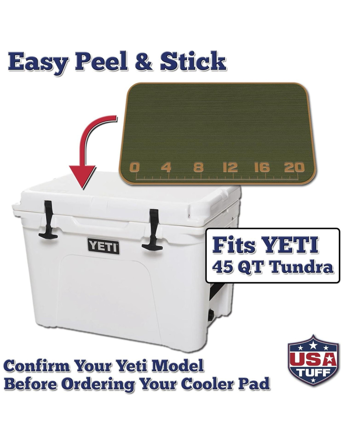 - HECHO A MEDIDA PARA ENFRIADORES YETI - El enfriador NO está incluido en este paquete. Este pad está cortado específicamente para adaptarse al modelo Tundra de 45 qt (no con ruedas).