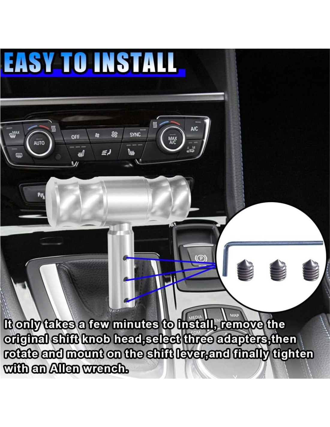- Fácil Instalación: La instalación de esta palanca de cambio de coche es simple, solo quita la cabeza de la palanca de cambio original, luego selecciona el conector roscado apropiado, quita la instalación en la varilla de cambio y finalmente aprieta firmemente.