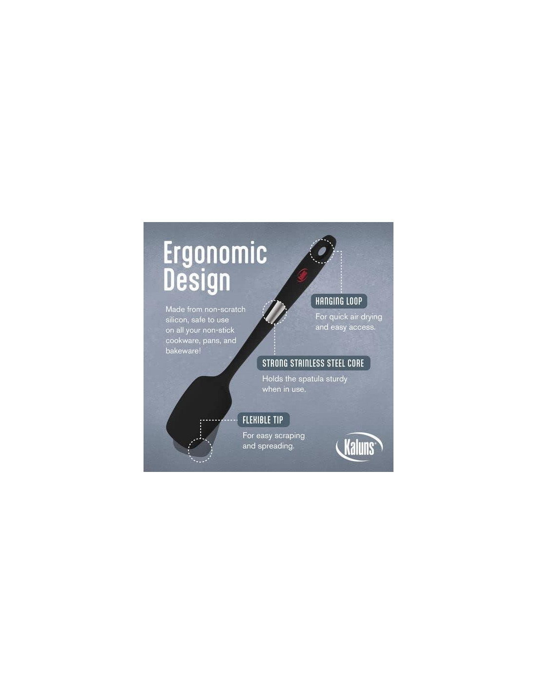 - Kaluns ofrece un conjunto de 5 herramientas versátiles: 1 espátula de cuchara, 1 espátula grande, 1 espátula para frascos, 1 espátula pequeña y pinzas de 9" (22.86 cm). Están construidas con un núcleo de acero inoxidable ergonómico y resistente que mantiene la espátula firme durante su uso. Nuestras espátulas de silicona sin costuras no se rasgarán, romperán, derretirán, deformarán ni astillarán. Son antiadherentes y resistentes al calor hasta 600F (315.6C).