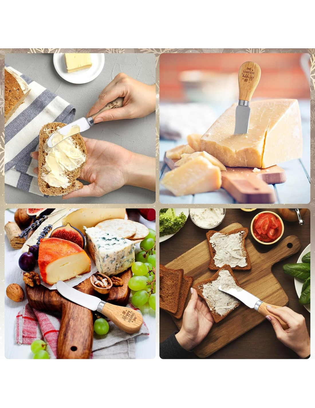 - Diseño de Mango de Madera Cómodo: con la ventaja de un mango de madera, nuestros cuchillos de queso navideños ofrecen un agarre cómodo y facilidad de uso; El mango amigable no solo añade encanto sino que también promueve un esparcimiento fácil sin estrés en sus manos; Sin embargo, por favor tenga en cuenta mantenerlos fuera del alcance de los niños
