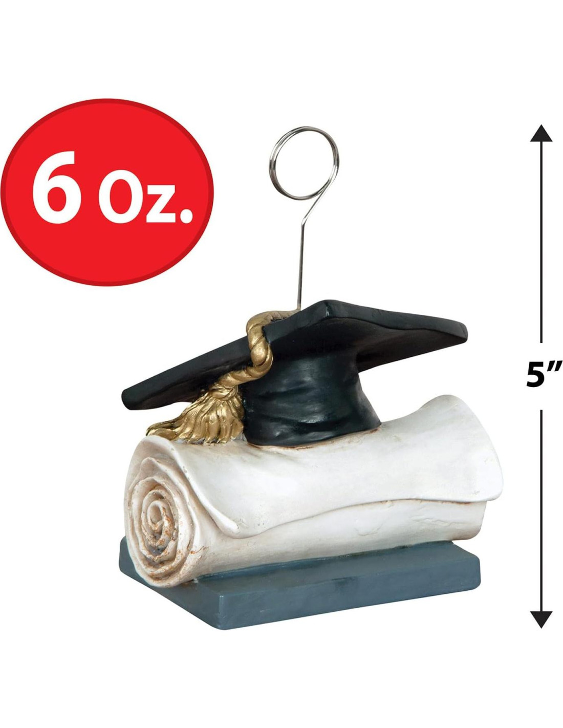 - DISEÑO ELEGANTE DE GRADUACIÓN: Pesos de polystone esculpidos con forma de diploma enrollado con un gorro de graduación negro y borlas doradas, ofreciendo una forma elegante de anclar globos o marcar lugares de fotos en cualquier evento de graduación