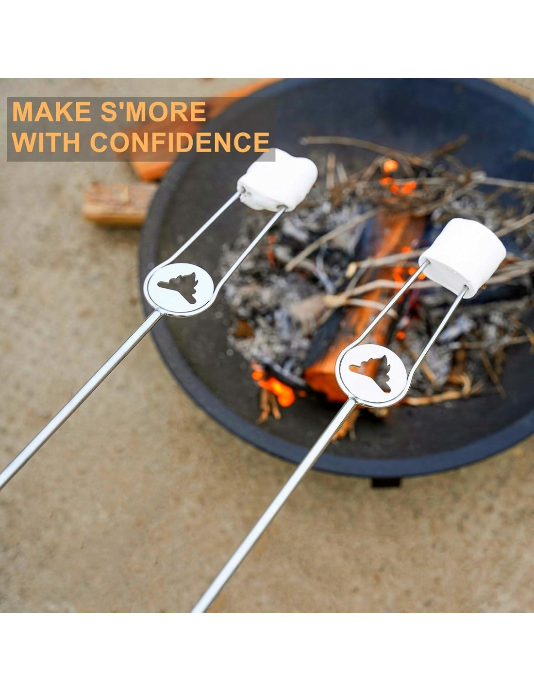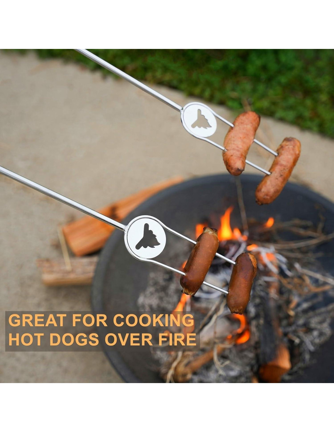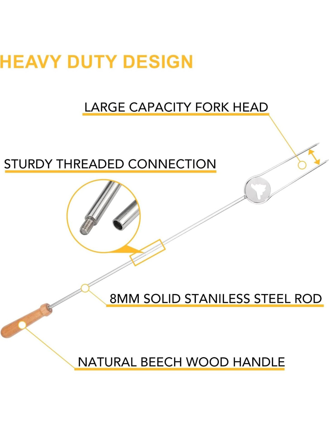 - Palos de asar perfectos: Los palos para asar malvaviscos son fáciles de ensamblar con postes roscados, y permanecen estables cuando se extienden para tostar sin temblar. Con dos puntas largas y afiladas, los tenedores de barbacoa ensartan fácilmente más hot dogs, verduras y kebabs a la vez.