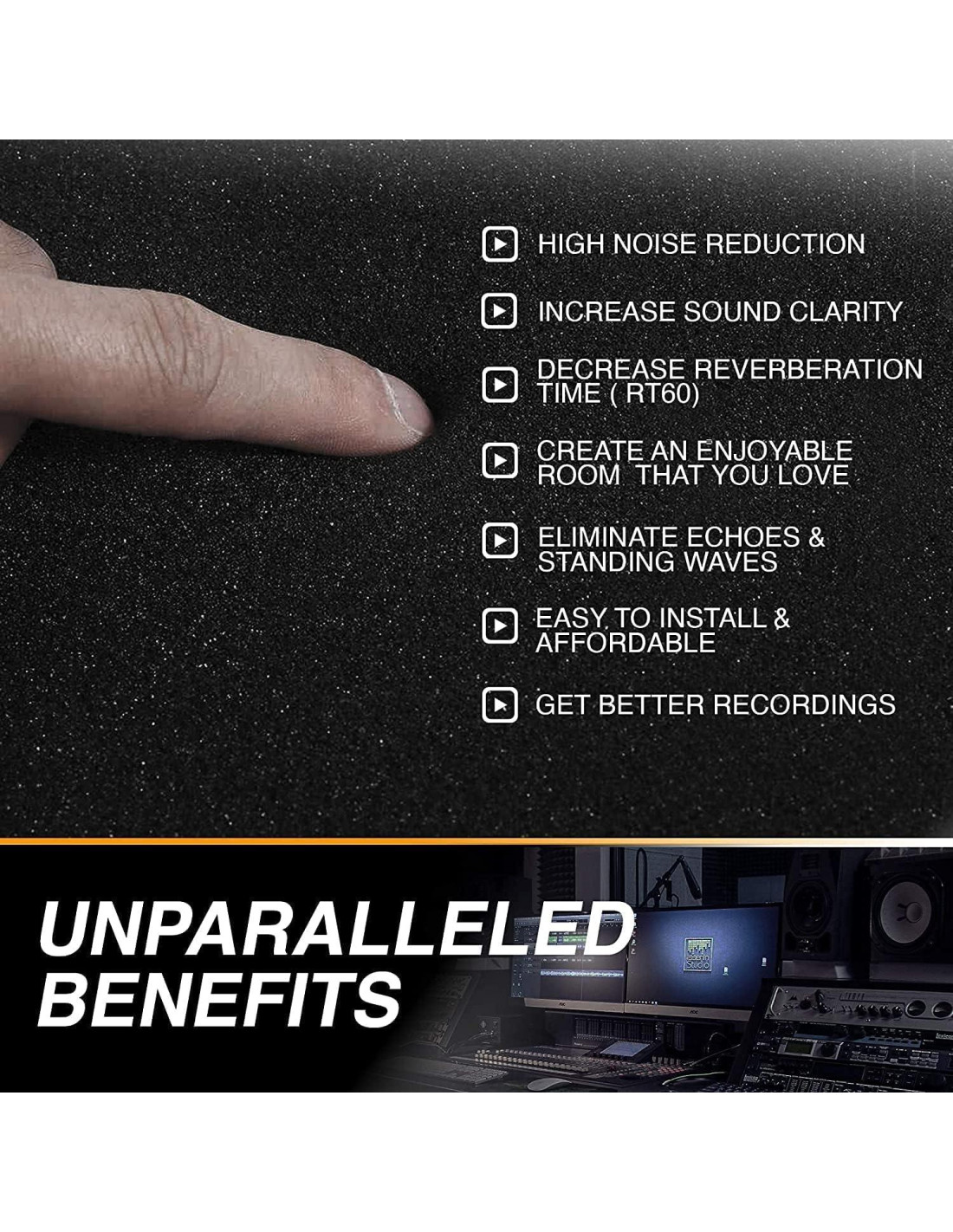 - Calidad - Nuestros Paneles de Espuma Acústica están hechos con espuma acústica flexible de grado profesional, diseñada para una absorción de sonido de calidad en una variedad de proyectos de insonorización. La espuma es densa y consistente en firmeza, por lo que el rendimiento de absorción acústica también será consistente.
