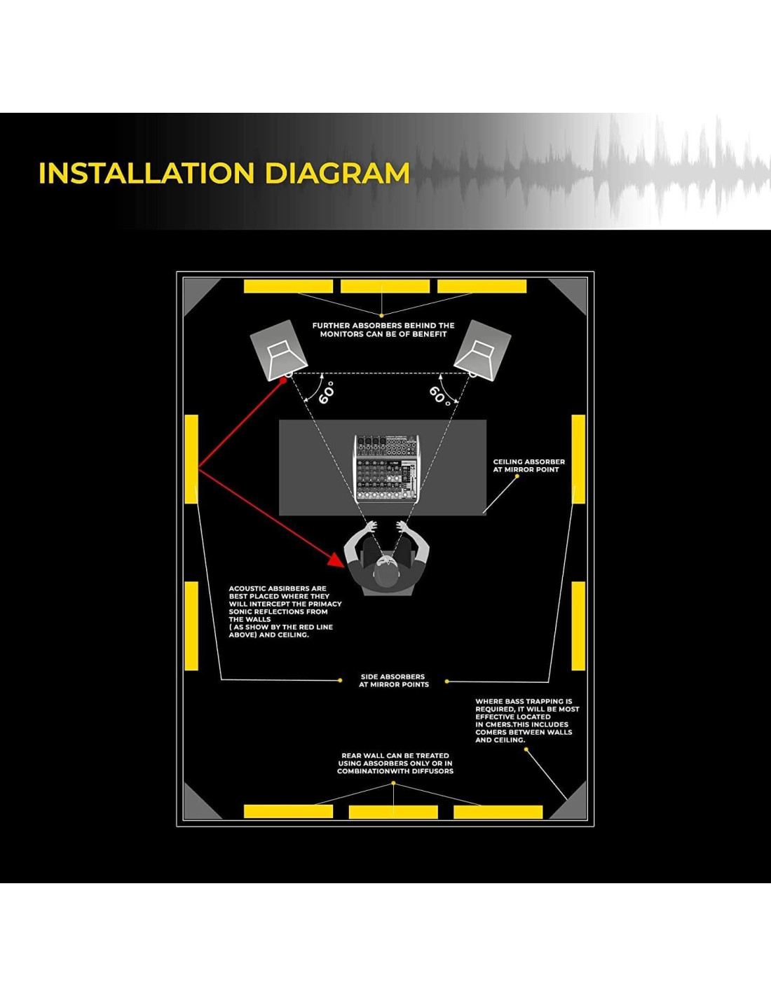 - Fácil de Instalar - Los Paneles de Espuma Acústica son livianos y se pueden instalar en una variedad de superficies diferentes. No se necesitan herramientas especiales para la instalación. Tenga en cuenta: Cinta doble / tiras o pegamento no están incluidos en el paquete y deben comprarse por separado.