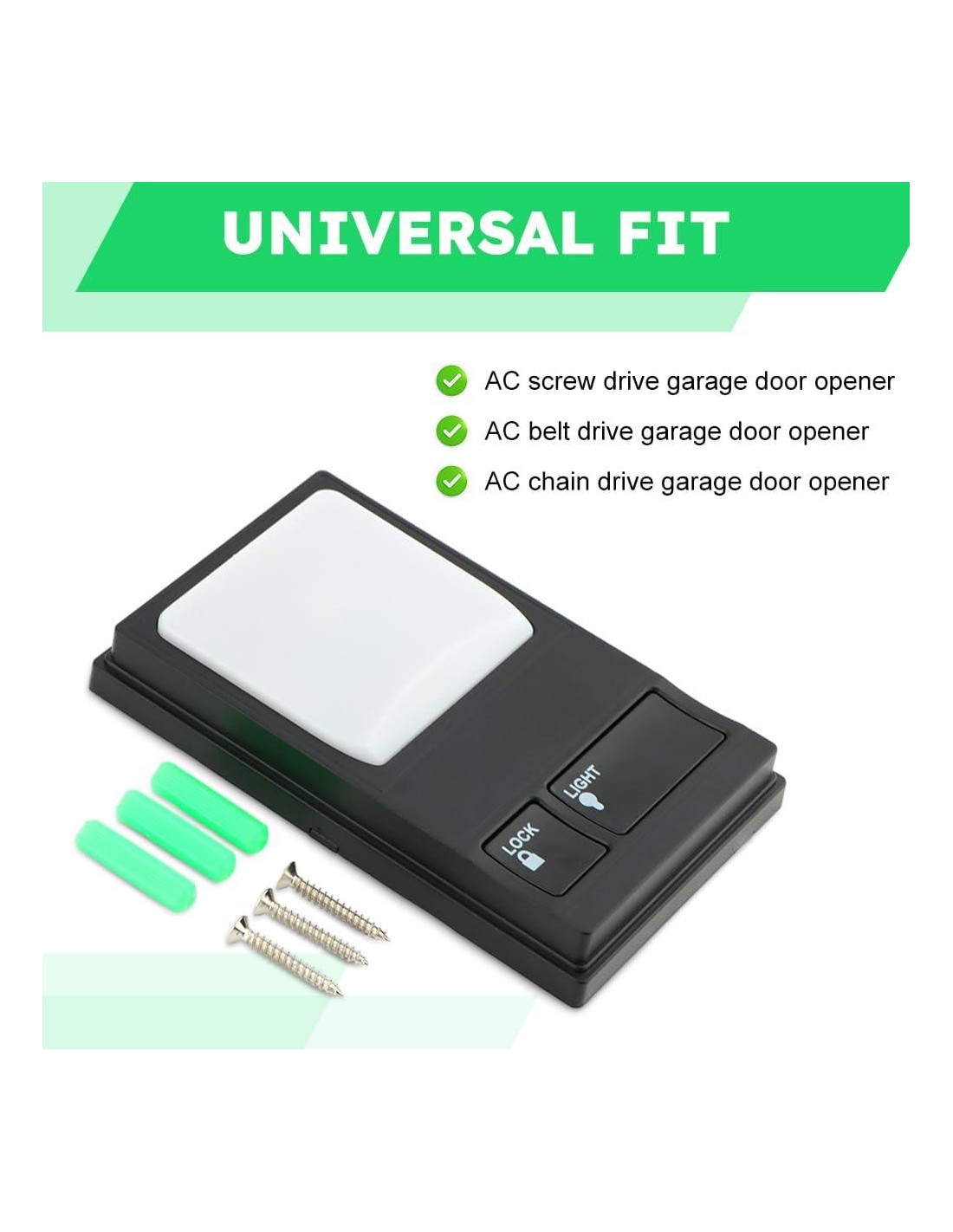 - Componentes incluidos: 1pc x Panel de Control de Abridor de Puerta de Garaje 3pcs x Tornillo de Expansión 3pcs x Tornillo