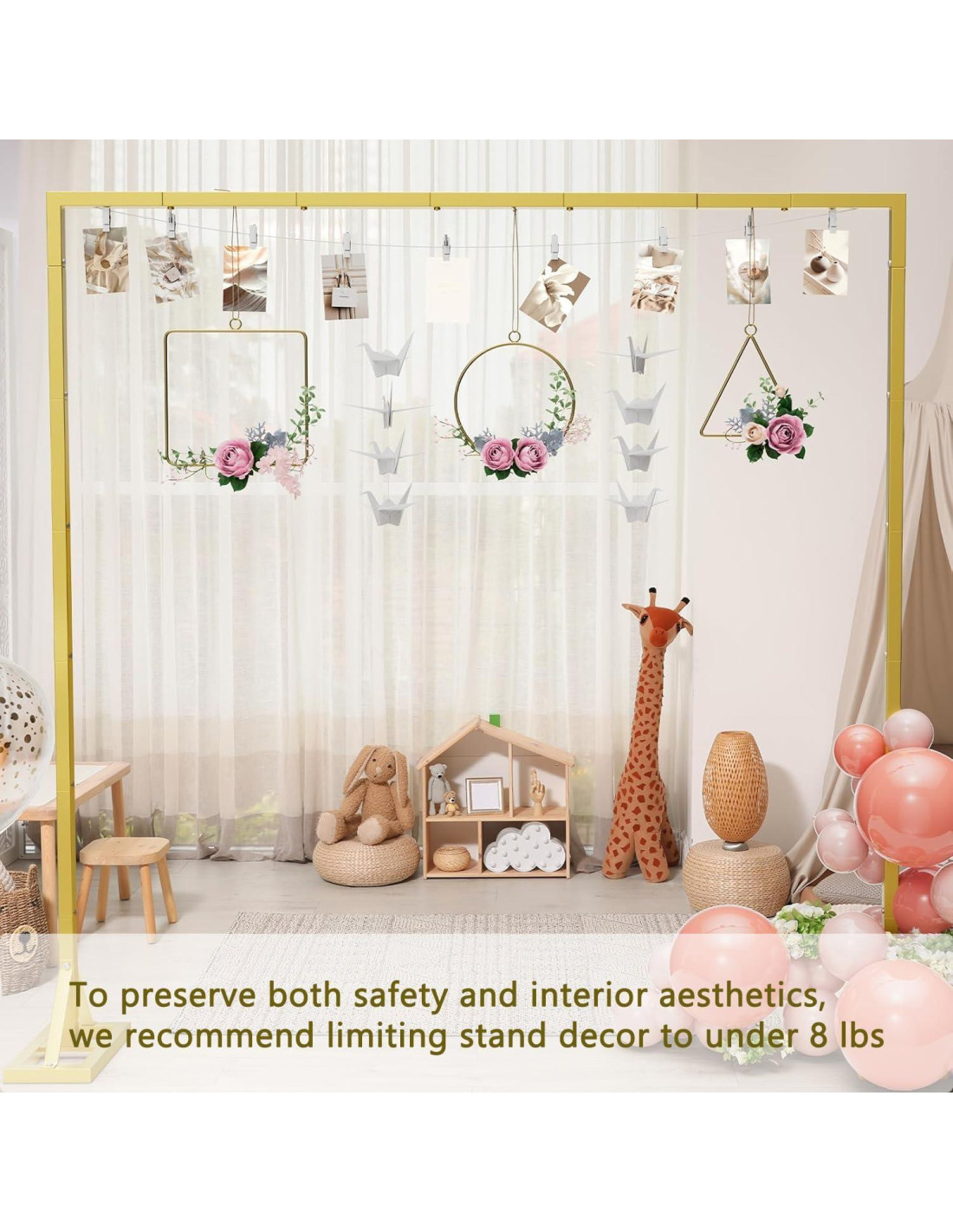 - Soporte de Fondo Cuadrado: Marco de acero de alta calidad con recubrimiento dorado electrochapado para una estética elegante, base reforzada con varillas de hierro de doble refuerzo. AVISO: Si sientes que el soporte de fondo no es lo suficientemente estable, por favor aprieta los tornillos y para preservar tanto la seguridad como la estética interior, recomendamos limitar la decoración del soporte a menos de 3.6 kg.