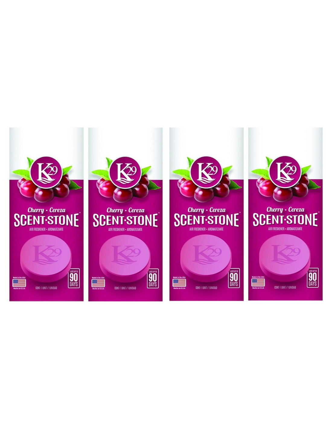 El Ambientador de Piedra K29 Sterling Teal - Cereza (paquete de 4) trae la inconfundible fragancia de cerezas frescas a tu vehículo, oficina, armario, baño, cubo de basura o área de tamaño similar. La famosa y original Piedra de Fragancia K29 de larga duración dura hasta 45 días. Hecho en EE. UU. con aceites de fragancia de alta calidad - cargas de alta concentración de aceite de fragancia aseguran una fragancia duradera. Ecológico, la Piedra de Fragancia K29 está elaborada con ingredientes completamente naturales. La única liberación continua de fragancia mantendrá tu espacio oliendo dulce durante semanas.