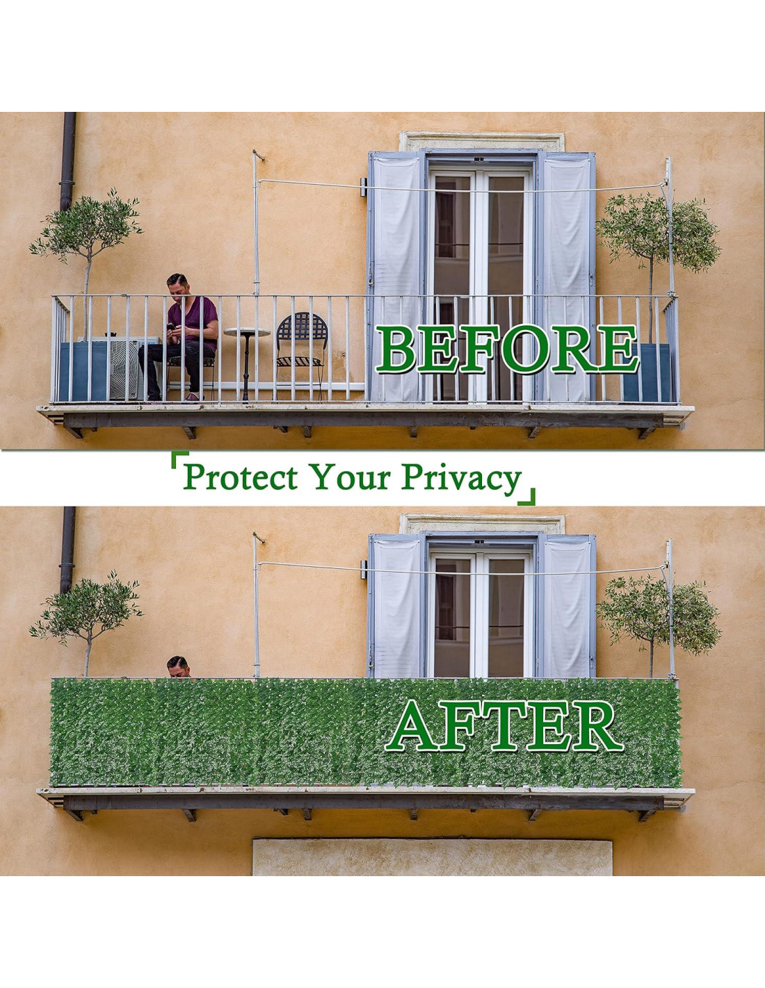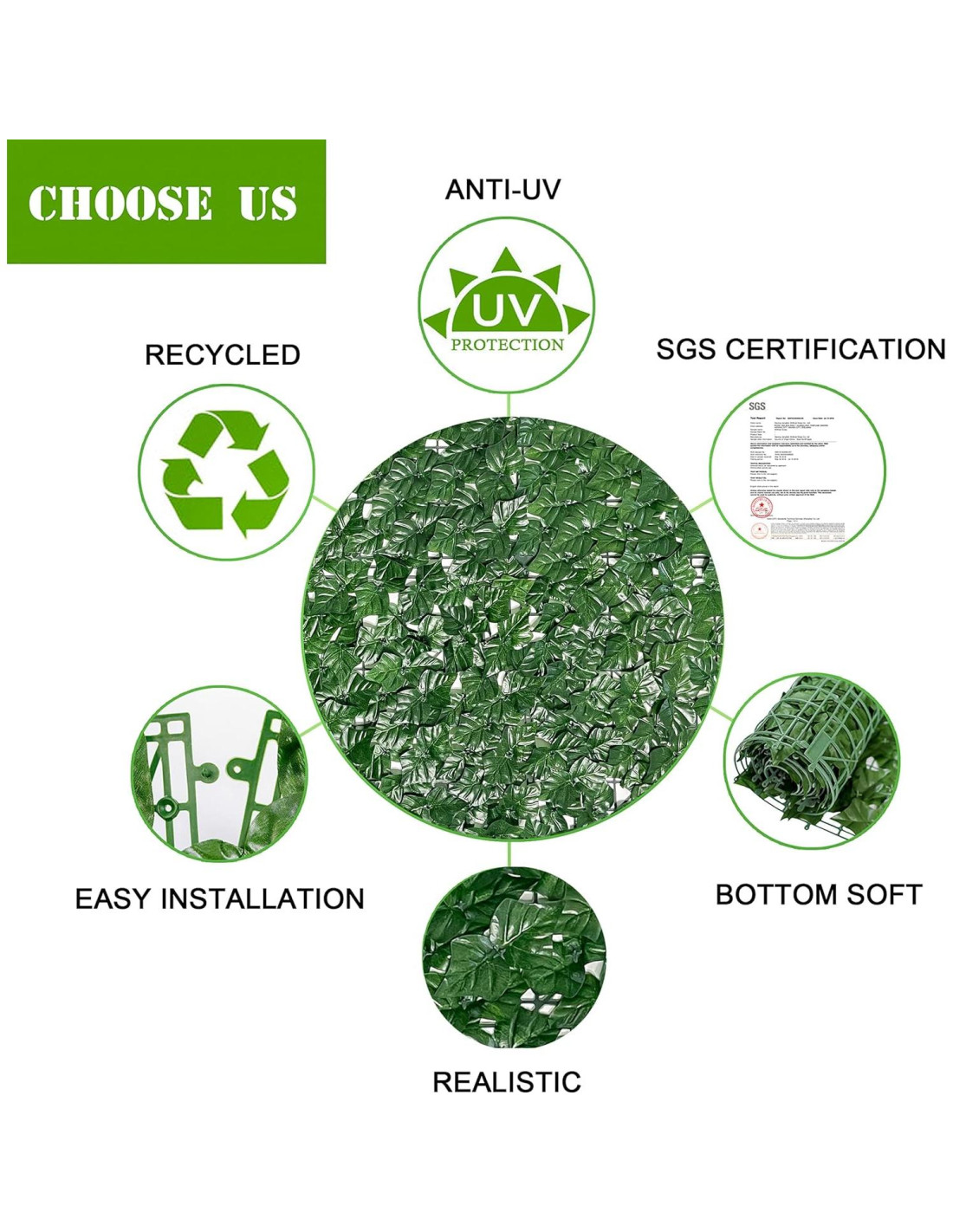 - Textura de Hoja: las hojas de la cerca de privacidad de hiedra tienen texturas realistas. Nos inspiramos en las hojas reales de la vid trepadora de la naturaleza y las elaboramos en cada hoja, haciendo que su textura se asemeje a hojas reales. La hoja falsa puede bloquear eficazmente la luz fuerte, los rayos ultravioletas, es a prueba de polvo y proporciona aislamiento acústico. Comparado con cercas expandibles, somos más estables. El panel de la cerca no afecta la circulación del aire y protege tu privacidad.