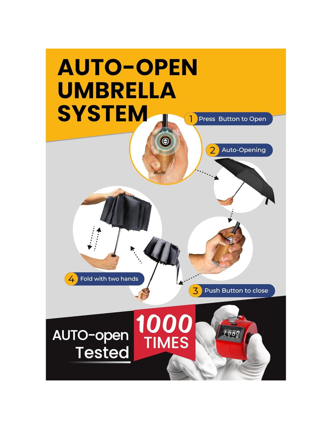 - SOMBRILLA COMPACTA AUTOMÁTICA: todas nuestras sombrillas están listas para soportar un uso intensivo. Combinación del mejor recubrimiento 210T, telas impermeables y 9 varillas de cúpula súper fuertes, hacen de ella una sombrilla confiable. La sombrilla grande tiene un mecanismo automático sostenible