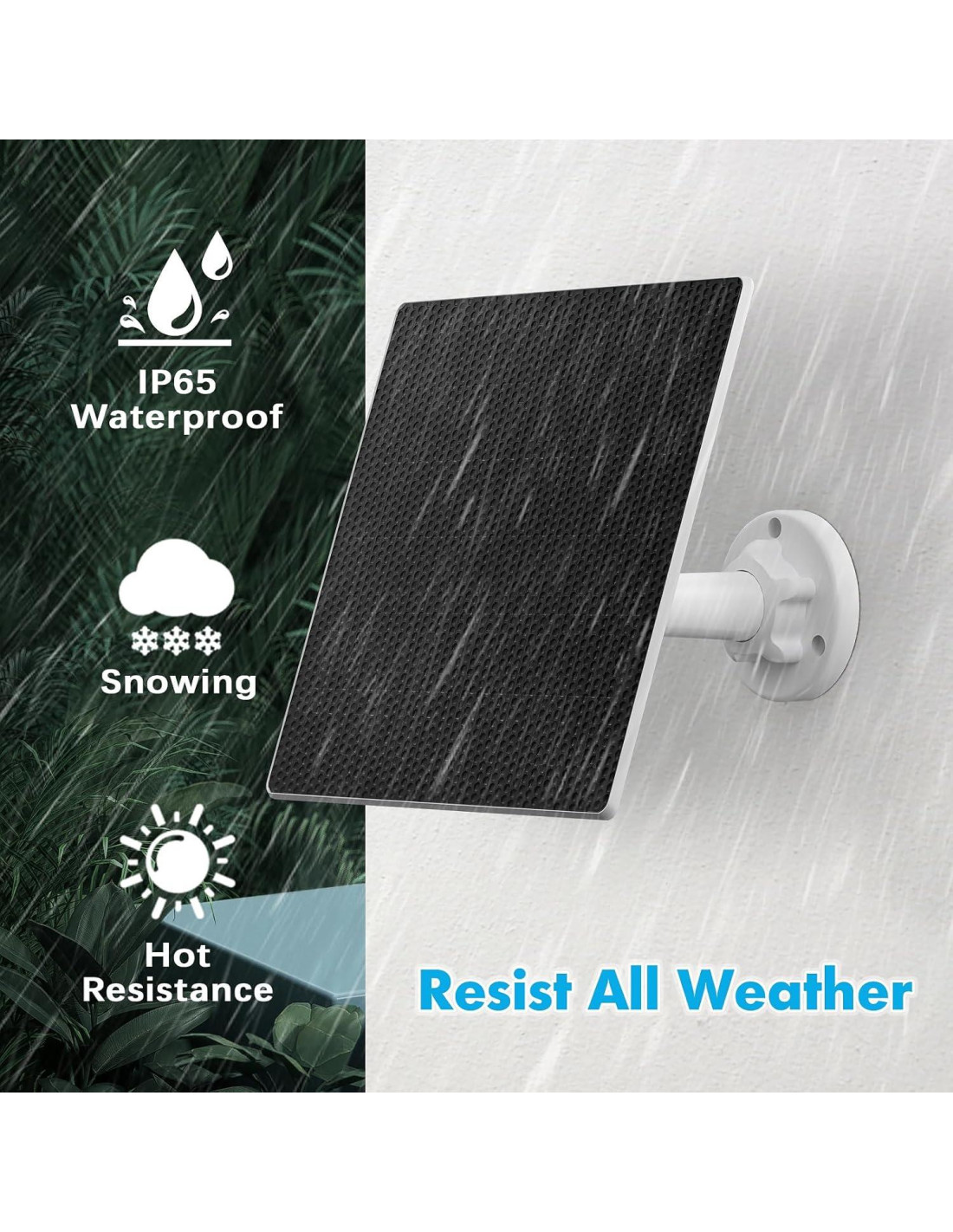 - Panel Solar Duradero y Resistente a las Inclemencias del Tiempo para Todas las Condiciones: Construido con materiales de alta calidad resistentes al envejecimiento, este cargador solar para cámara de seguridad es a prueba de agua, a prueba de fuego y resistente a la corrosión y temperaturas extremas. No necesita limpieza frecuente, no se oxida ni deforma, asegurando un rendimiento óptimo de carga durante todo el año.