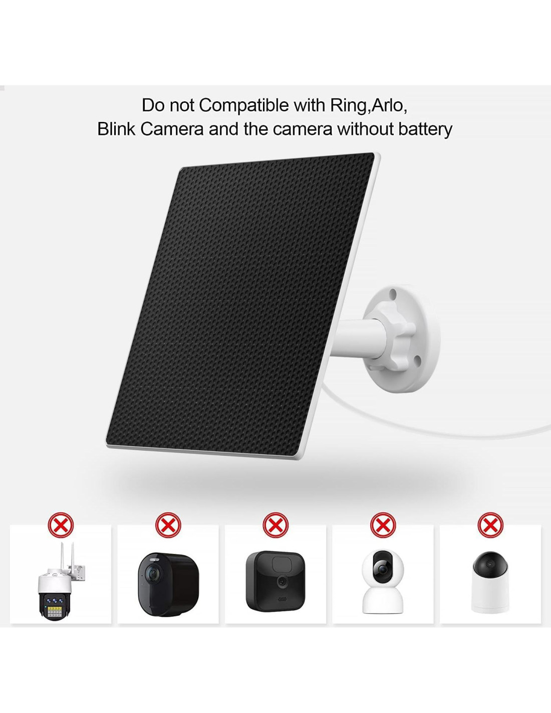 - Energía Solar Continua para Cámaras de Seguridad con un puerto micro USB y USB-C - No se Necesitan Baterías ni Adaptadores: Diseñado específicamente para Cámaras de Seguridad con un puerto micro USB y USB-C (el panel solar USB no es compatible con cámaras Arlo Blink Ring y cualquier cámara conectada sin batería), este panel solar obtiene energía continua bajo la luz solar directa, proporcionando energía solar confiable para tus Cámaras de Seguridad día y noche. ¡Di adiós a los cambios frecuentes de batería y a los adaptadores de alimentación a partir de ahora!