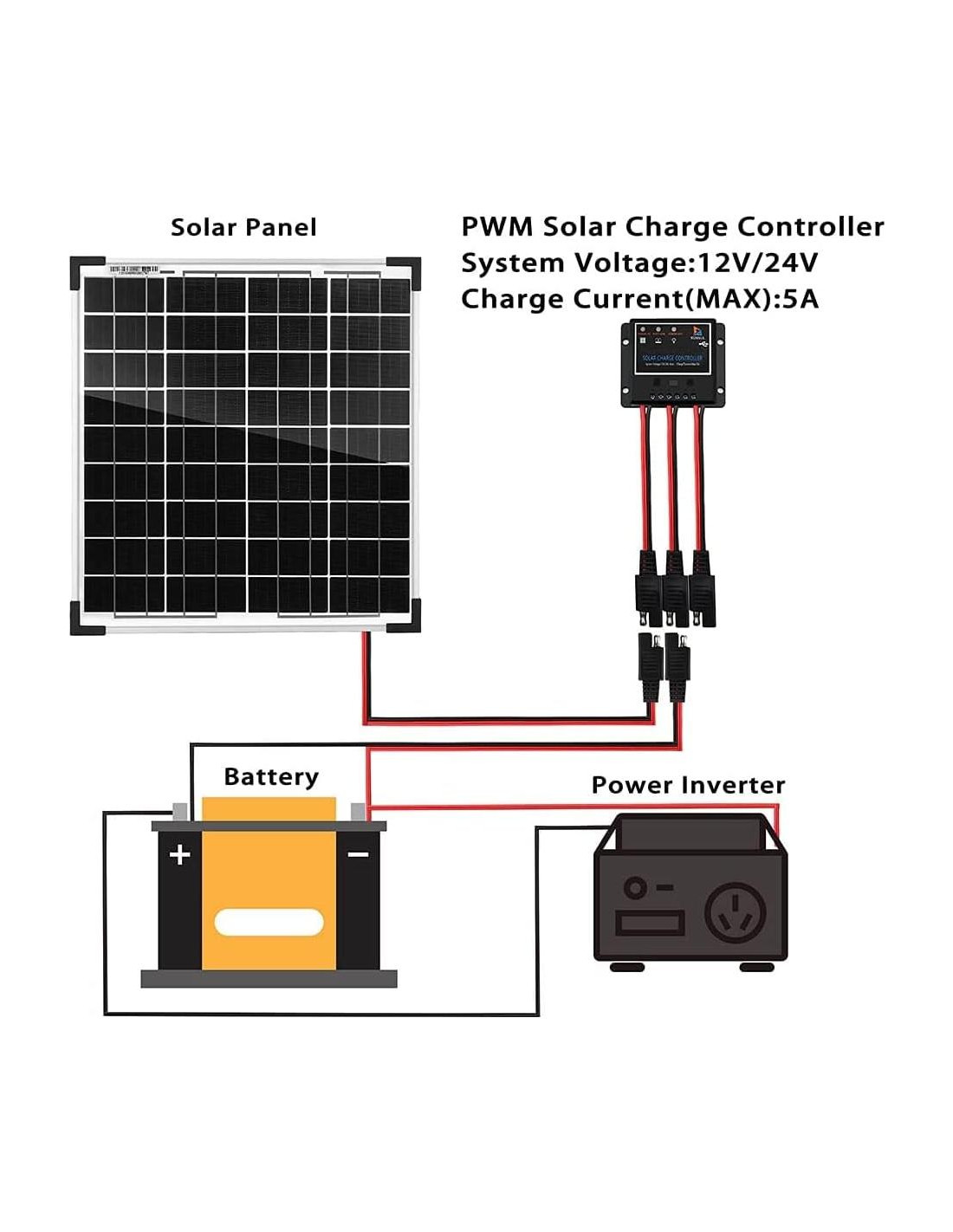 - Controlador de Carga Inteligente - Nuestro controlador de carga de 12V/24V 5A utiliza un sistema de carga PWM de 4 etapas (Carga, Aumento, Flotación y Ecualización) que prolonga la vida útil de la batería y mejora el rendimiento del sistema. También incluye protección inteligente contra polaridad inversa, sobrecarga, cortocircuito y corriente inversa. Además, el controlador cuenta con puertos de salida USB 5V/2A para cargar dispositivos móviles.