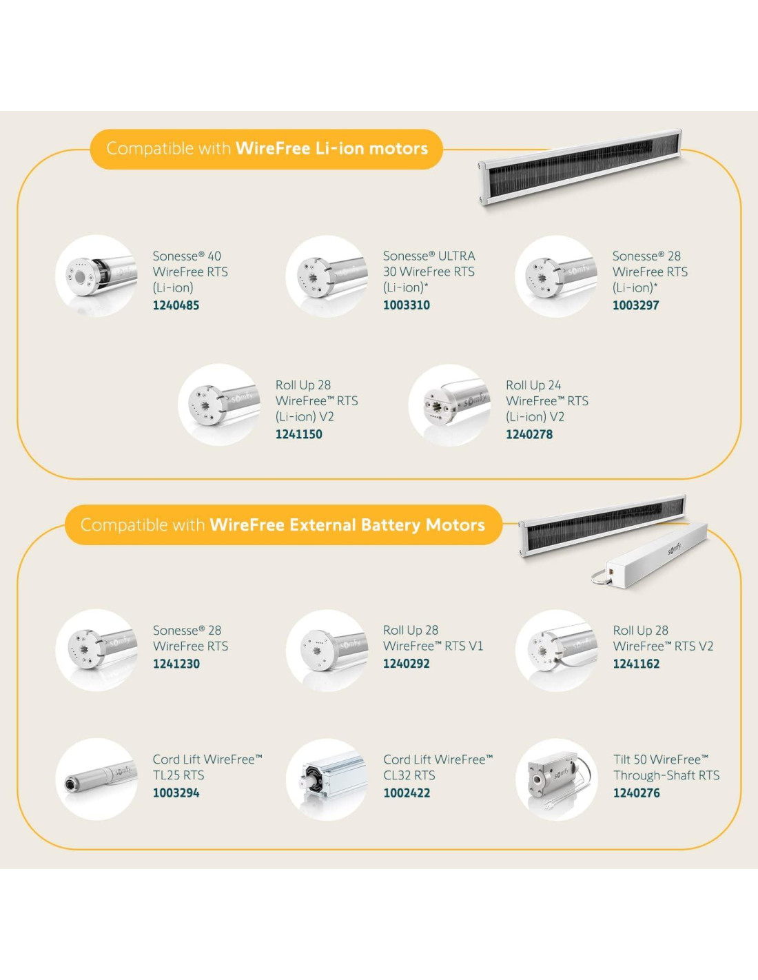 - COMPATIBLE CON LA MAYORÍA DE LOS MOTORES SOMFY - Compatible con motores Li-ion Sin Cable (con una batería de litio incorporada) y motores de batería externa (usando un paquete de batería de litio).