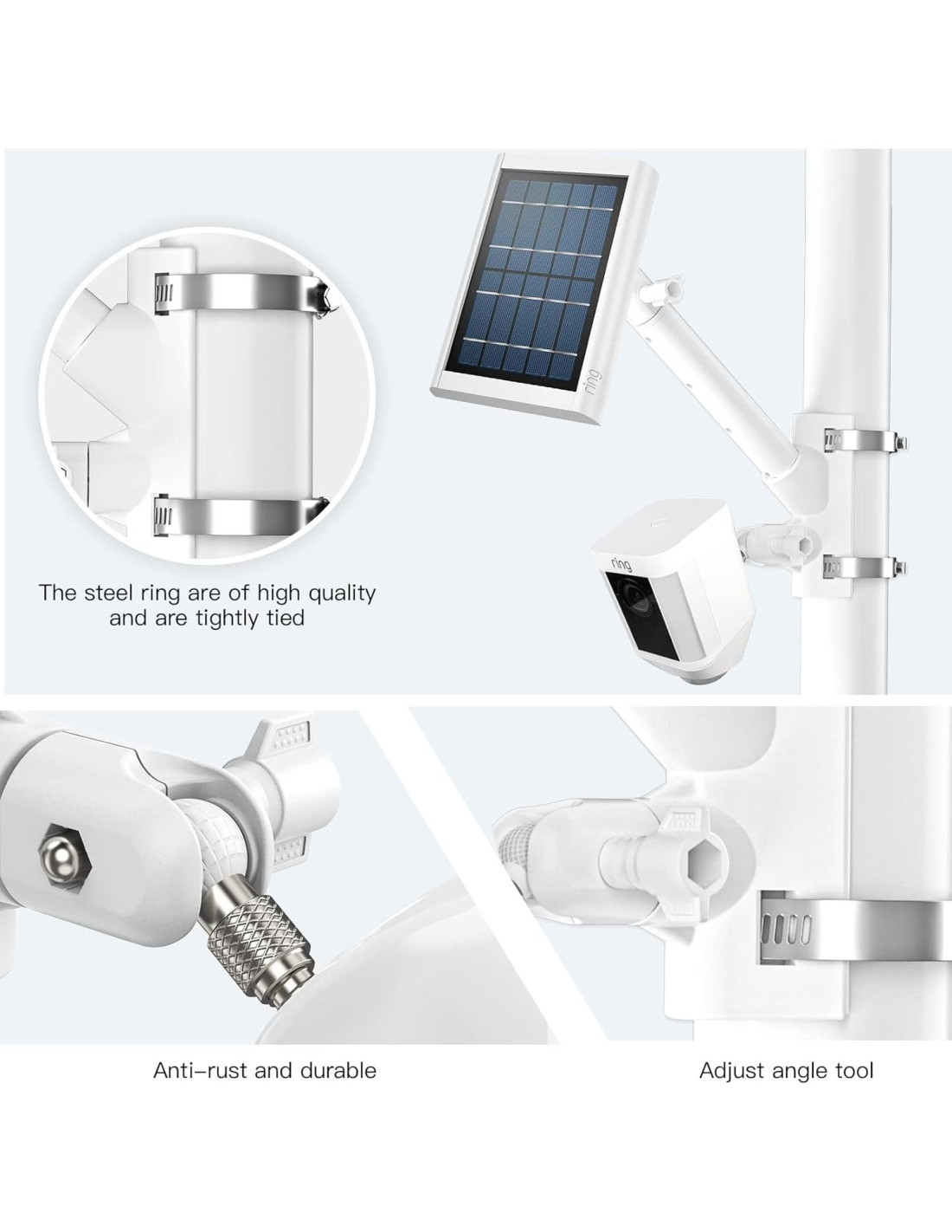- VISIÓN FLEXIBLE: Nuestro Soporte en Poste se puede ajustar fácilmente con un giro de 360 grados y una inclinación de 90 grados, permitiendo la posición flexible de tu panel solar ring, panel solar super ring y cámara de batería spotlight stick up cam. Cuenta con un fuerte y seguro bloqueo de ángulo que permitirá que tu cámara arlo permanezca en la misma posición.