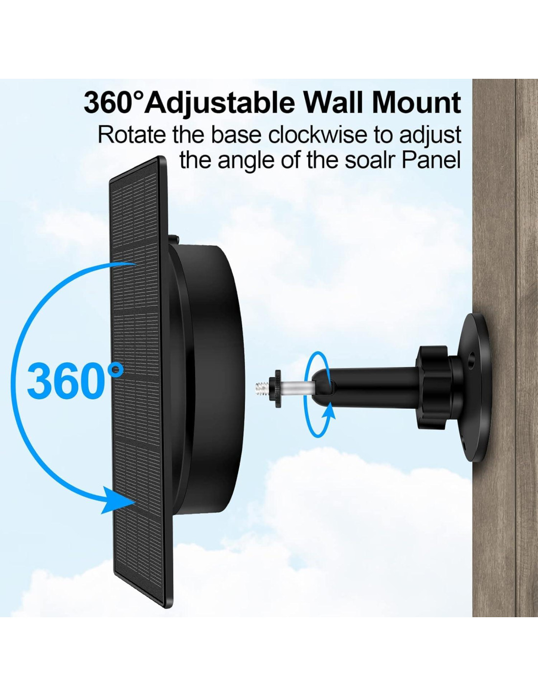 - Soporte de Montaje Ajustable 360: Nuestro cargador solar para cámara blink incluye un soporte ajustable 360, puede ajustar el panel solar e instalarlo en un lugar que pueda recibir suficiente luz solar.