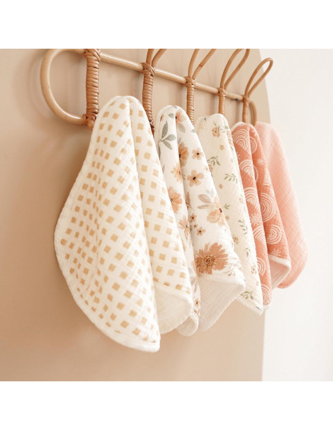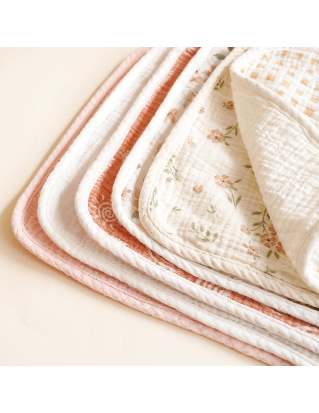 - Usos Multifuncionales: Este conjunto de paños de eructar para bebés se puede usar de varias maneras: como paños de eructar, paños de lavado, baberos o toallas de almohada. Elaborados con tela súper suave para mantener a tu bebé cómodo