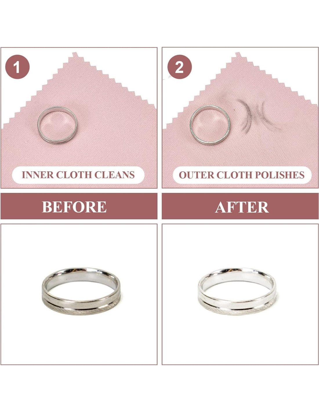 - FÁCIL DE USAR: Paño de limpieza de plata para joyería de oro, latón y la mayoría de otros metales. Diseño de pulido de doble cara, elimina fácilmente los rasguños y el óxido en la joyería para hacer que tu joyería brille nuevamente