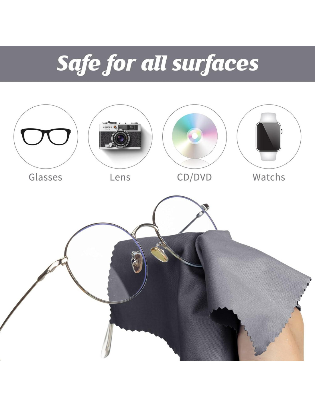 - Múltiples Usos: nuestro paño para limpiar gafas no solo es aplicable para limpiar tus gafas o gafas de sol, sino que también funciona bien con la pantalla de tu teléfono, pantallas de TV LCD, tablets, espejo retrovisor del auto, lentes de cámaras, lentes de laptops, gafas de buceo, espejo de maquillaje, o cualquier otra superficie delicada, satisfaciendo tus diversas necesidades