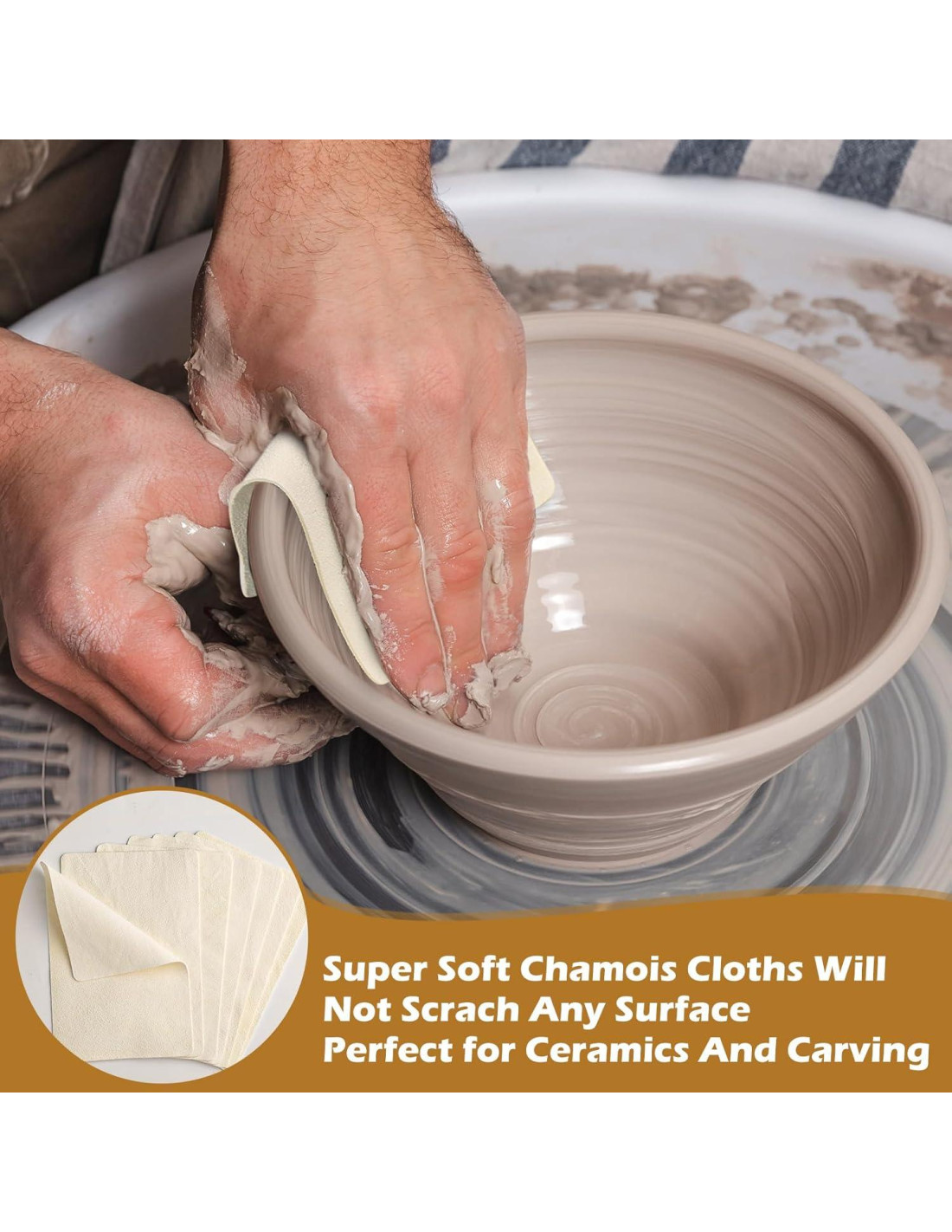 - [Cantidad y Tamaño] Recibirás 30 paños de chamois pre cortados con dimensiones de 8.13 cm * 12.00 cm. No solo tienes una cantidad abundante, sino que el grosor también se ha incrementado para satisfacer tus diversas necesidades de cerámica DIY y limpieza. Es una gran idea compartir estas herramientas de alfarería con tu familia y amigos y experimentar la alegría de la artesanía.
