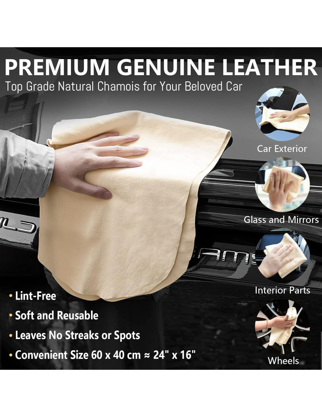 - SIN PELOS Y SIN RAYAS: El cuero de chamois natural no rayará ninguna superficie, dejando el acabado de tu coche impecable y sin rayas. También es ideal para el coche, motocicleta, barco, autocaravana, ventanas, exhibiciones, baños, cocina, etc.