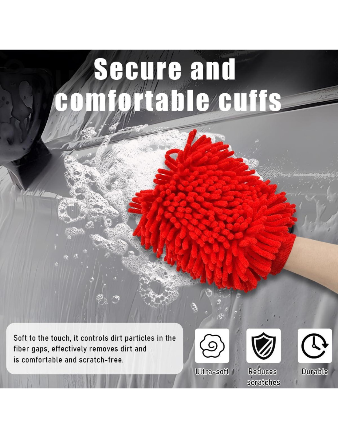 - [Amplia Aplicación] : El mitón de lavado es una herramienta de limpieza universal que tiene un amplio rango de usos. Es adecuado para la limpieza de asientos y ventanas de autos. Además, se utiliza a menudo para limpiar la oficina y sofás, refrigeradores, armarios u otros muebles del hogar.