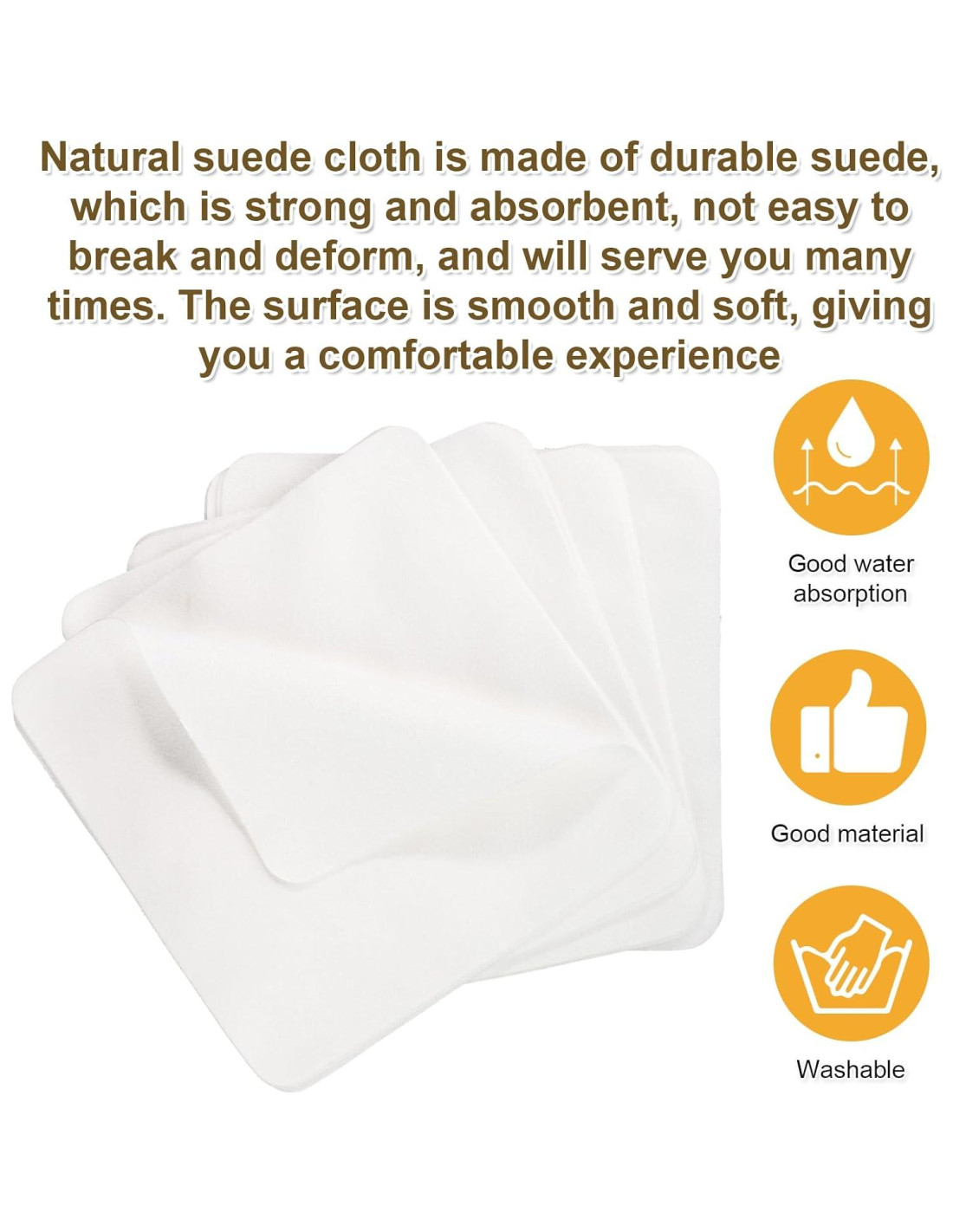 - Material Premium: Estos paños de limpieza de chamois están hechos de chamois premium, que es suave y elástico, cómodo al tacto, altamente absorbente, no fácil de rasgar, no dañará tus artículos y se puede usar durante mucho tiempo.