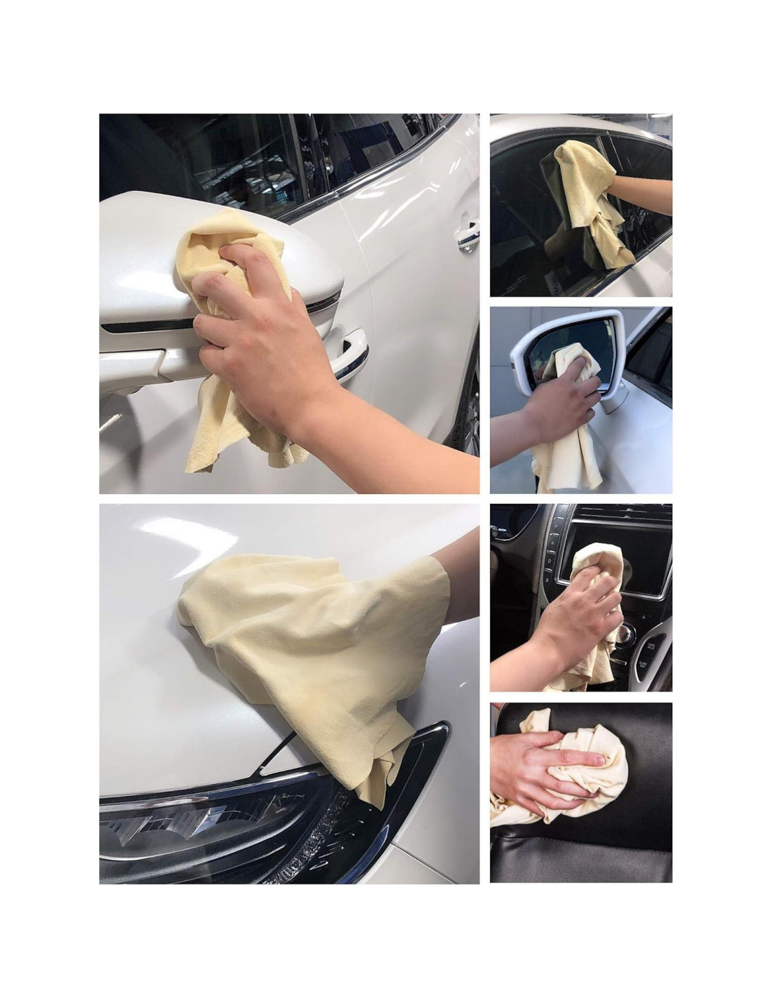 - CARACTERÍSTICAS DEL PRODUCTO: A diferencia de las fibras sintéticas, esta toalla de chamois natural está hecha de cuero de oveja, que es libre de rayones y súper suave con gran extensibilidad. Las capacidades de absorción de estas toallas de chamois para automóviles se mejoran significativamente para absorber y retener grandes cantidades de agua. Proporciona un brillo sin pelusa en tu automóvil sin dejar marcas de agua.