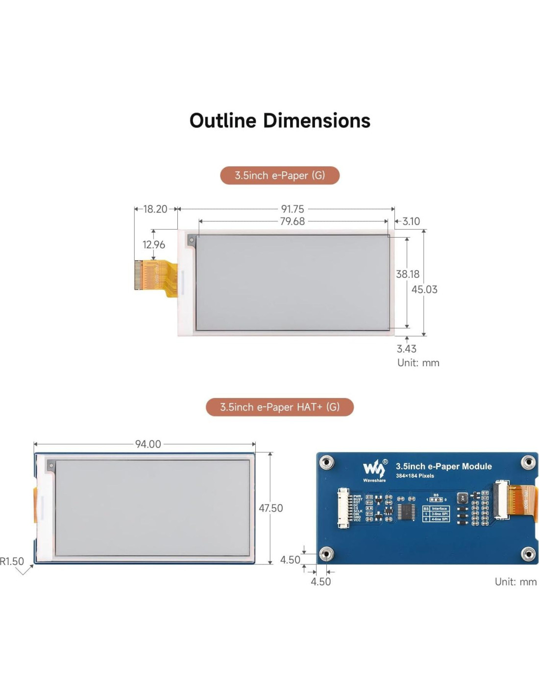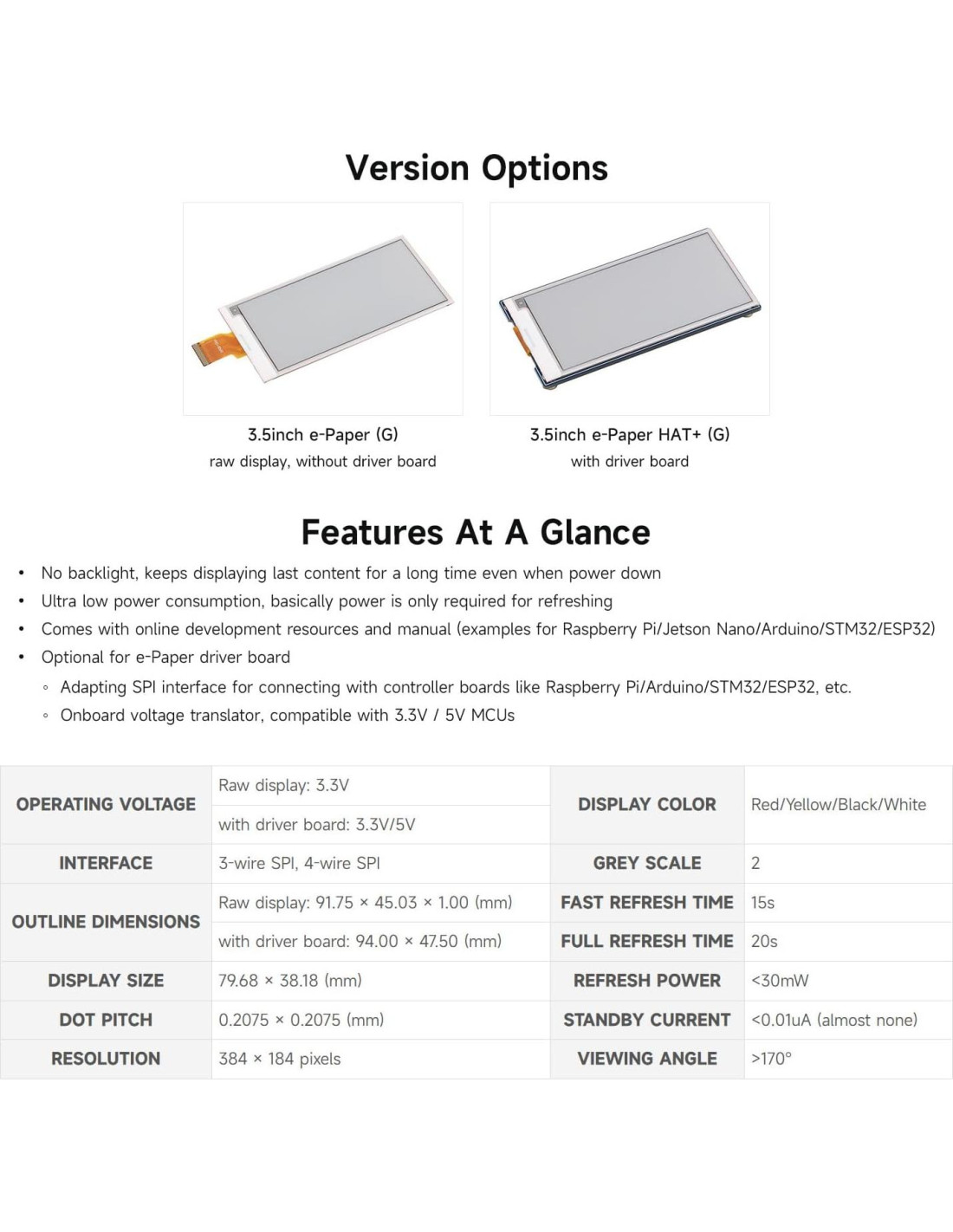 - Pantalla E-Ink compacta de 3.5 pulgadas: El módulo E-Paper de 3.5 pulgadas Waveshare (G) ofrece una pantalla compacta y de alta calidad, con una resolución de 384*184 píxeles, perfecta para dispositivos pequeños donde el espacio es limitado pero se requieren visuales claras.