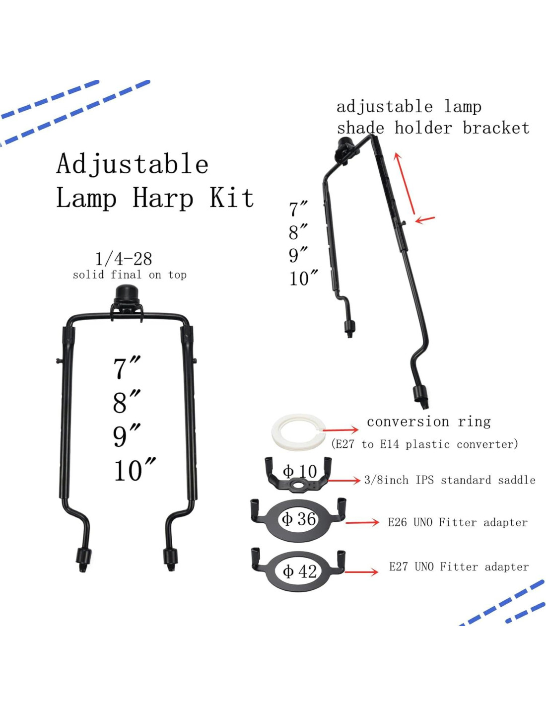 - Paquete incluido: Kit de Soporte de Lámpara Ajustable de 2 Conjuntos, incluyendo 2 x soporte de pantalla de lámpara ajustable, 2 x anillo de conversión (convertidor de plástico E27 a E14), 2 x adaptador E26 UNO, 2 x adaptador E27 UNO, 2 x silla estándar IPS de 3/8 pulgadas (0,95 cm), 2 x remate sólido en la parte superior