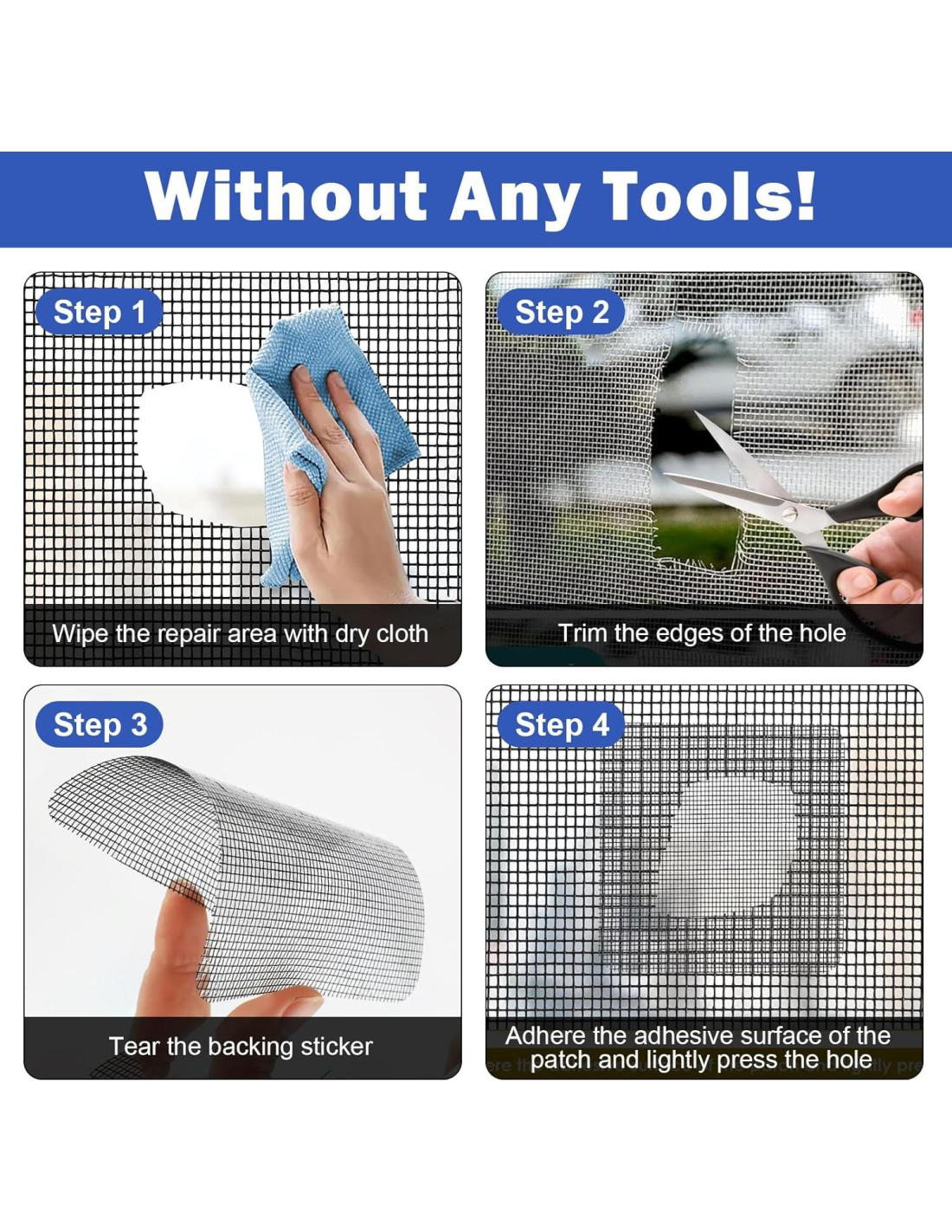 - [Fácil y Rápido] : ¡No se necesitan herramientas y en solo segundos terminas tu reparación! Limpia la malla de la pantalla y luego usa el parche de pantalla para cubrir el desgarro o agujero que deseas reparar. Forma rápida y fácil de reparar pantallas de ventanas y puertas de pantalla.