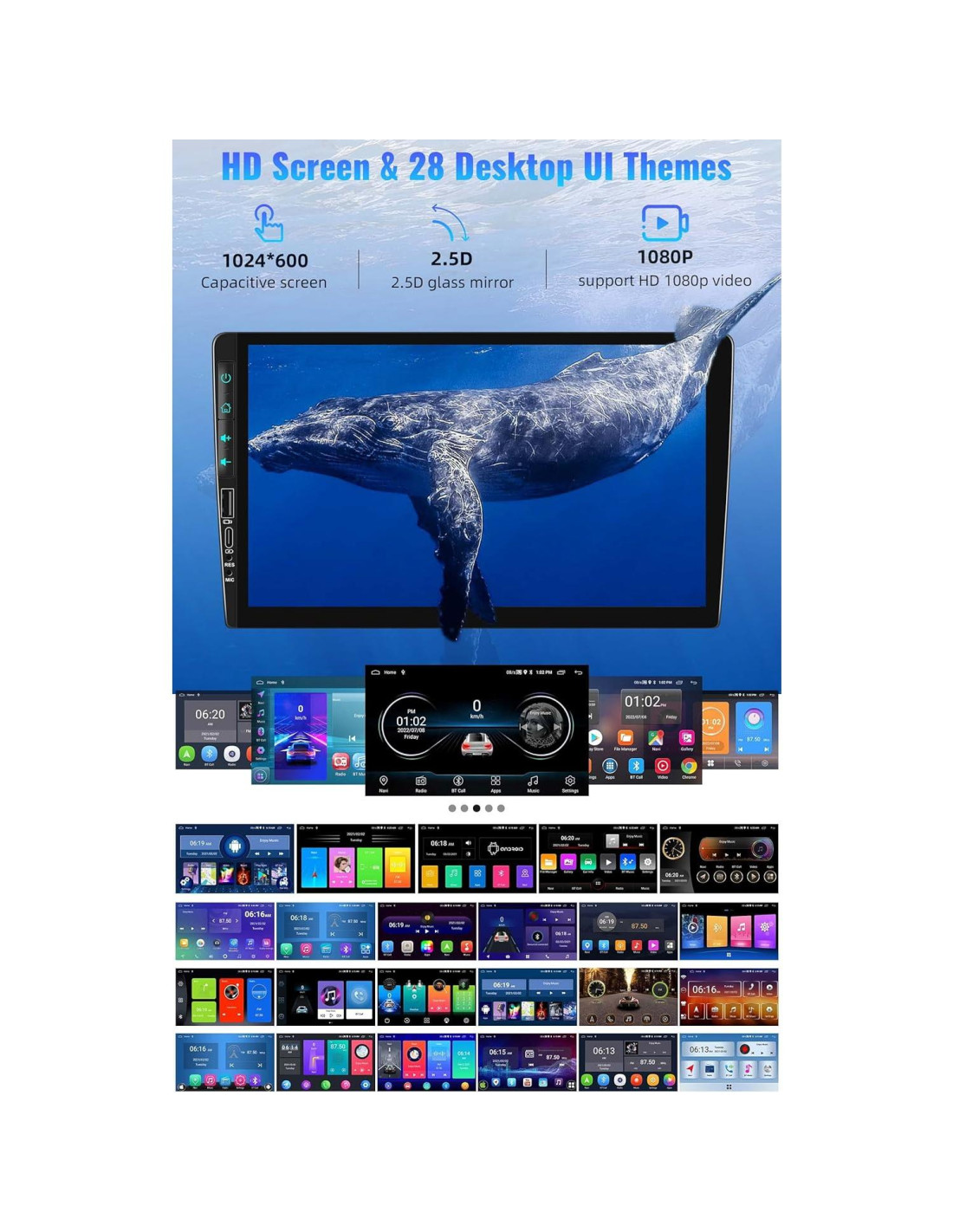 - [Estéreo de Coche Android Doble Din] Reproductor Multimedia de Coche de Pantalla Táctil Capacitiva de 9 pulgadas, unidad principal de navegación GPS de 2 din en el tablero, radio de coche Android 13 doble din con Apple CarPlay y Android Auto, enlace espejo para teléfonos Android/iOS, características de radio ca táctil 28 tema de UI, 2G RAM + 64G ROM, tamaño estándar de doble din: (An*L*H) 9*2.4*5.1 pulgadas (22.86*6.1*12.95 cm)