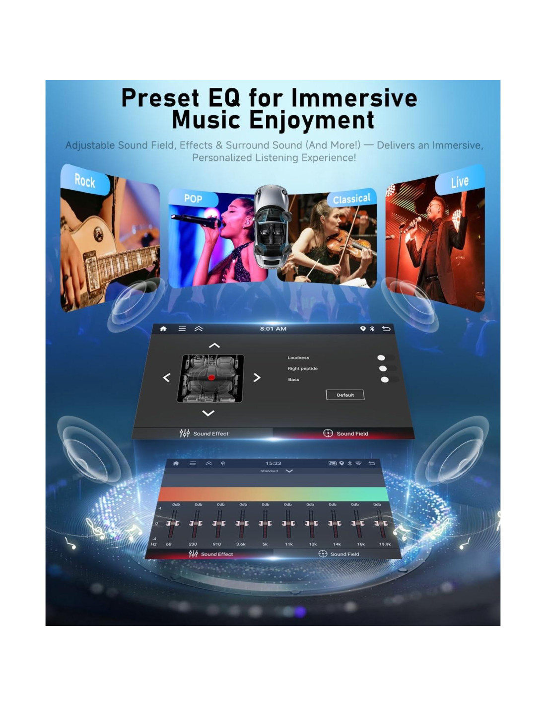 - 2. [Carplay & Android Auto & MirrorLink] CarPlay y Android Auto inalámbricos ofrecen una interfaz familiar y fácil de usar para una integración perfecta entre tu teléfono y el sistema de infoentretenimiento de tu coche. Facilita la navegación a través de aplicaciones, música y mensajes sin distraerte de la carretera. Además, el sistema soporta enlace espejo IOS/Android, permitiéndote reflejar la pantalla de tu teléfono en la pantalla de la radio y usar las aplicaciones, música, videos y más de tu teléfono.
