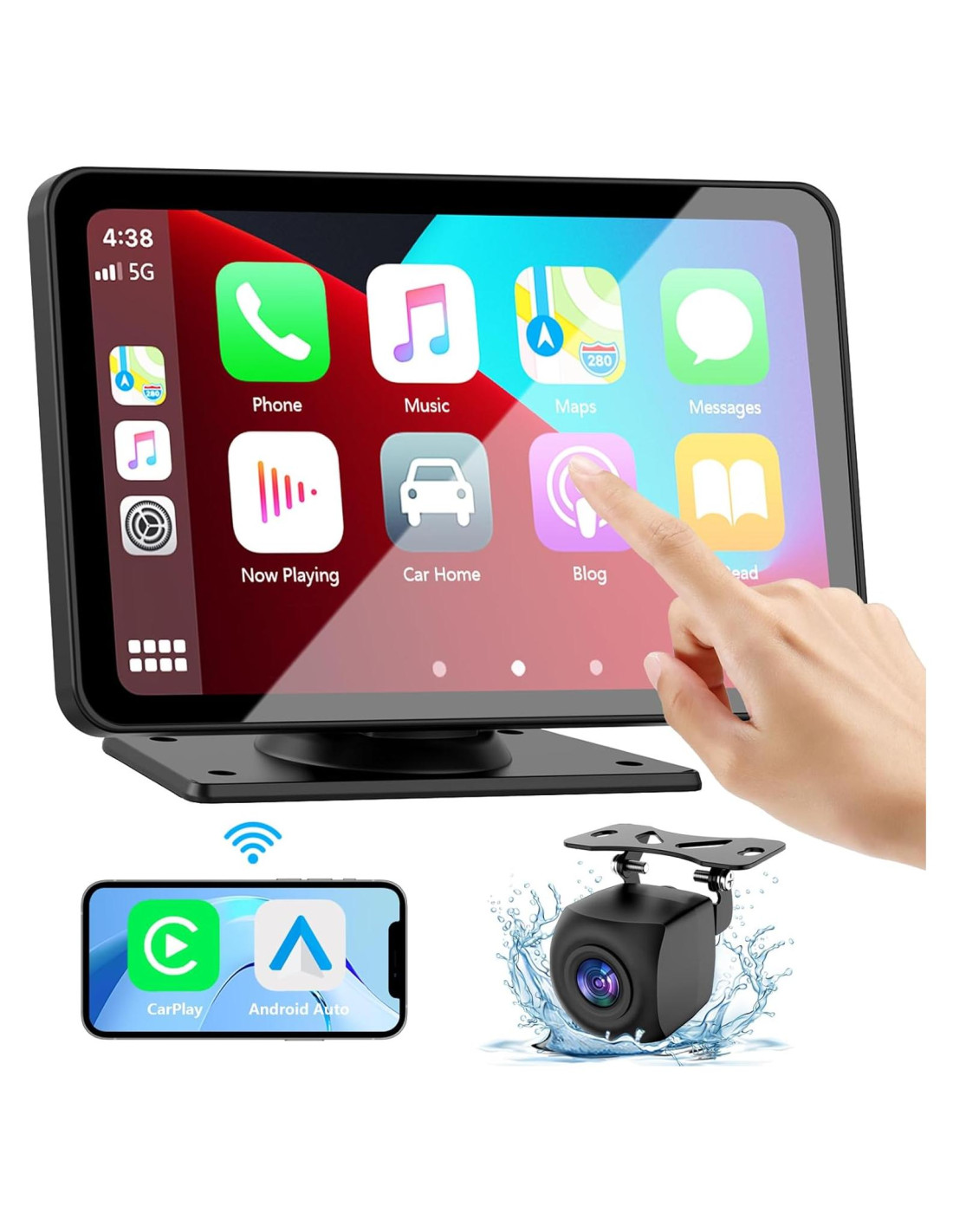 - [Fácil de instalar, apto para la mayoría de los coches] Conéctalo y juega directamente con el tablero a través del encendedor de cigarrillos. Esta pantalla portátil Carplay viene con un soporte autoadhesivo que se puede instalar en superficies lisas como el parabrisas, el tablero, etc. No necesitas desensamblar la consola de tu coche, mantén la radio original de tu coche, perfecta coexistencia. Apta para casi todo tipo de coches, camiones, caravanas, furgonetas, remolques, campers, etc.