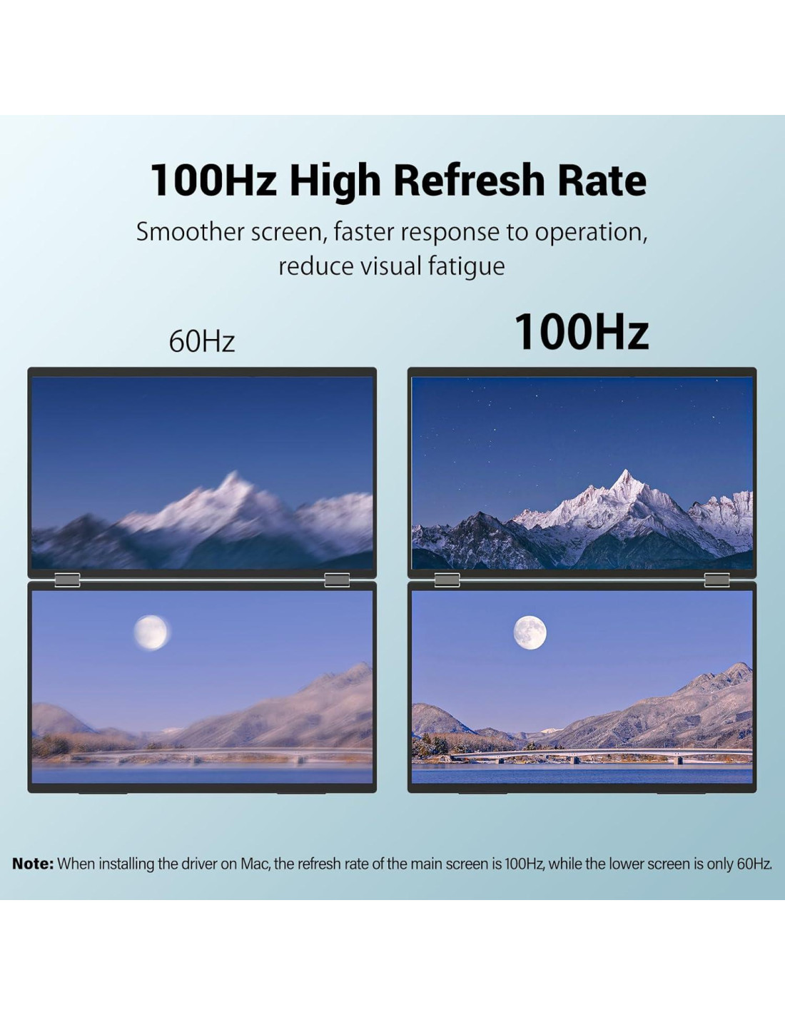 - [Experiencia de Operación Suave] El Extensor de Pantalla para Laptop cuenta con una combinación de dos pantallas de 18.5 pulgadas (46,99 cm), resolución 1080P, pantalla Full HD IPS A+, gama de colores 115% sRGB y tasa de refresco de 100Hz, proporcionando a los usuarios una excelente percepción del color y una experiencia de operación suave.
