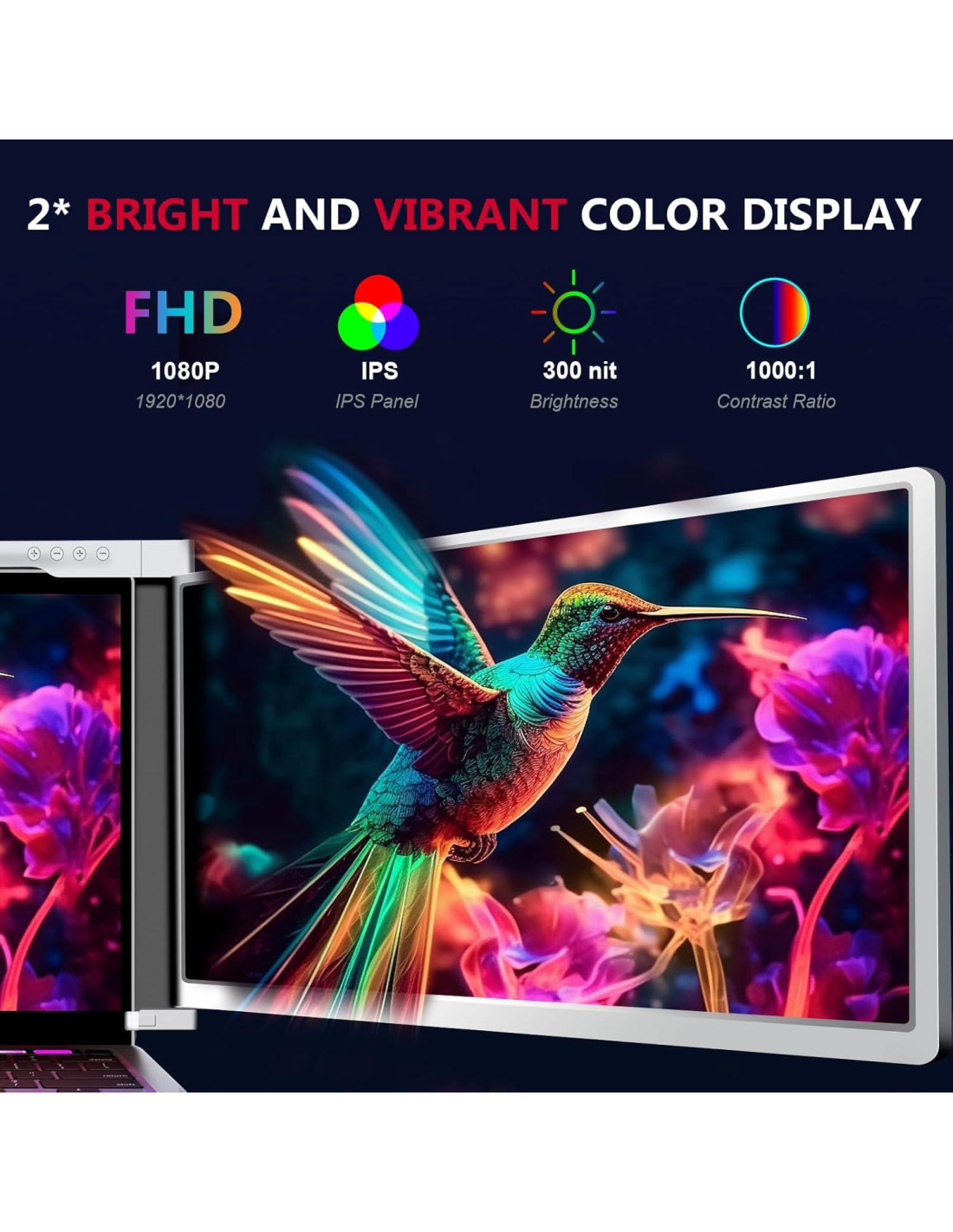 - Monitor Doble para Laptop: Sumérgete en impresionantes visuales FHD con dos grandes pantallas de 15 pulgadas 1080P FHD IPS. Nuestro extensor de pantalla de laptop triple cuenta con un gamut de color NTSC del 72%, tasa de refresco de 60Hz y tecnología HDR para visuales impresionantes. El ángulo de visión de 178 y el diseño de bisel estrecho aseguran una experiencia visual inmersiva. La pantalla Full HD y la función de extensor de pantalla garantizan una experiencia visual vívida e inmersiva. Monitor portátil para laptop, ya sea que estés en movimiento o trabajando desde casa.