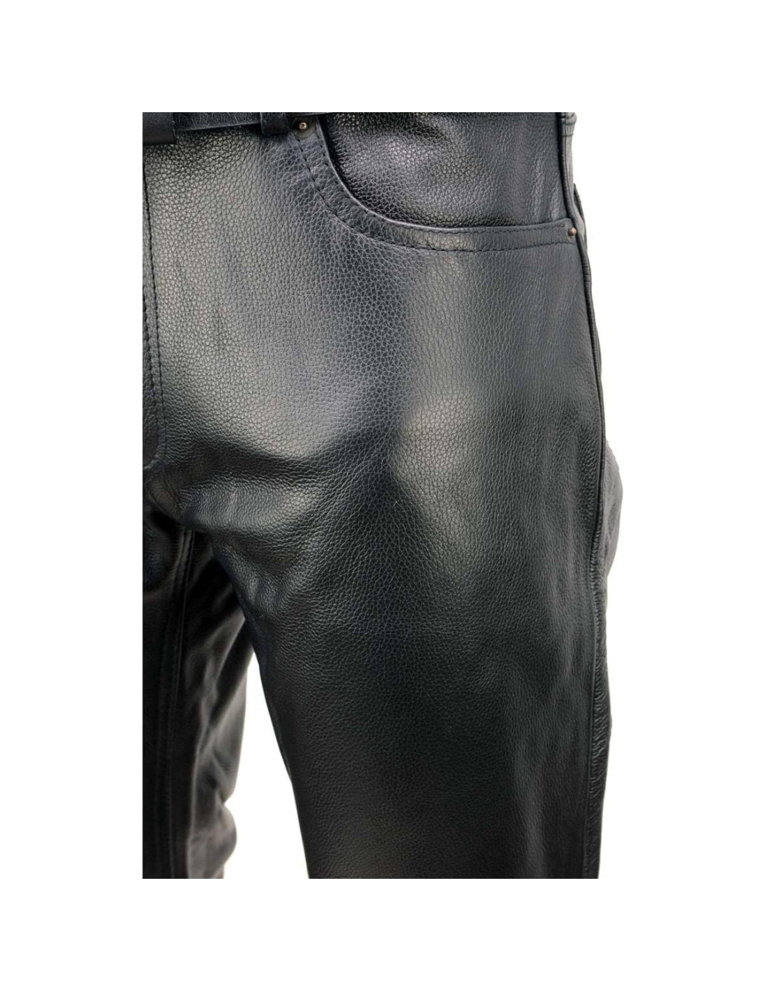 Los pantalones de cuero negro clásicos de 5 bolsillos para hombre Milwaukee Leather LKM5790 cuentan con características hechas de cuero premium de 1.2-1.3mm de grosor. Cierre de cremallera clásico y botón, 2 bolsillos frontales con 1 pequeño bolsillo para monedas, 2 bolsillos traseros, forro interior de satén suave, bajos sin terminar para un fácil ajuste de tamaño, panel frontal único para un aspecto limpio, cremalleras YKK genuinas - conocidas por su durabilidad. Milwaukee Leather - Una vez que lo tienes, lo amas.
