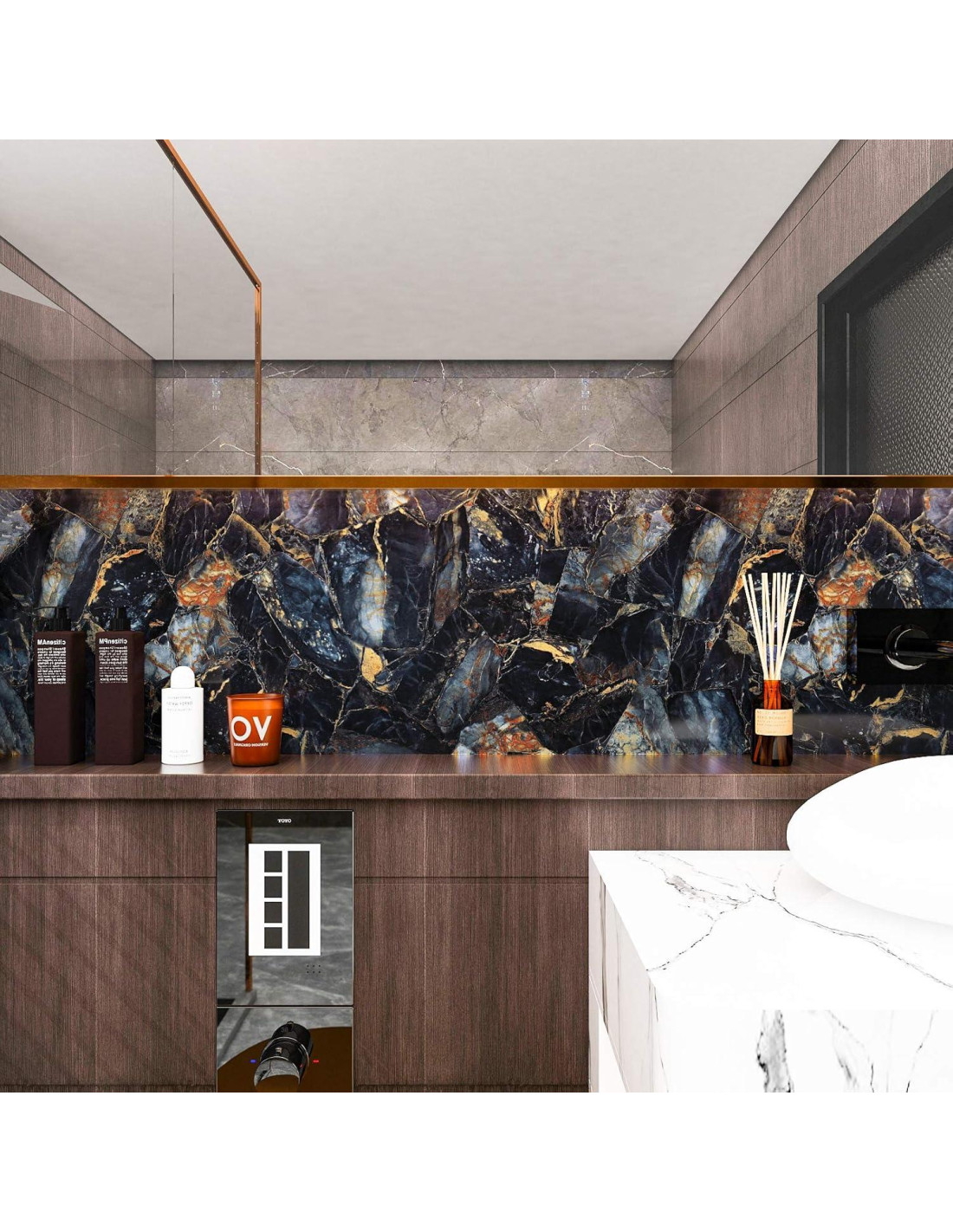 - Papel contacto de mármol, con mármol azul marino y vetas doradas, acabado de alto brillo que refleja la luz maravillosamente, añadiendo lujo y elegancia instantánea a las encimeras. Hecho de vinilo de alta calidad, duradero, resistente a desgarros, tamaño del rollo es 15.7 pulgadas de ancho x 118 pulgadas de largo, cubre 13 pies cuadrados cada rollo.