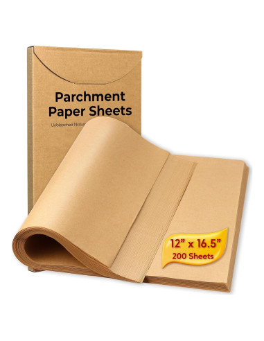 Hojas de Papel Pergamino Sin Blanquear - 30.5 cm x 42 cm Pre-cortadas, Anti-adherentes, Ideal para Hornear y Cocinar, Se Ajusta a Bandejas de Media Hoja (200 Hojas)