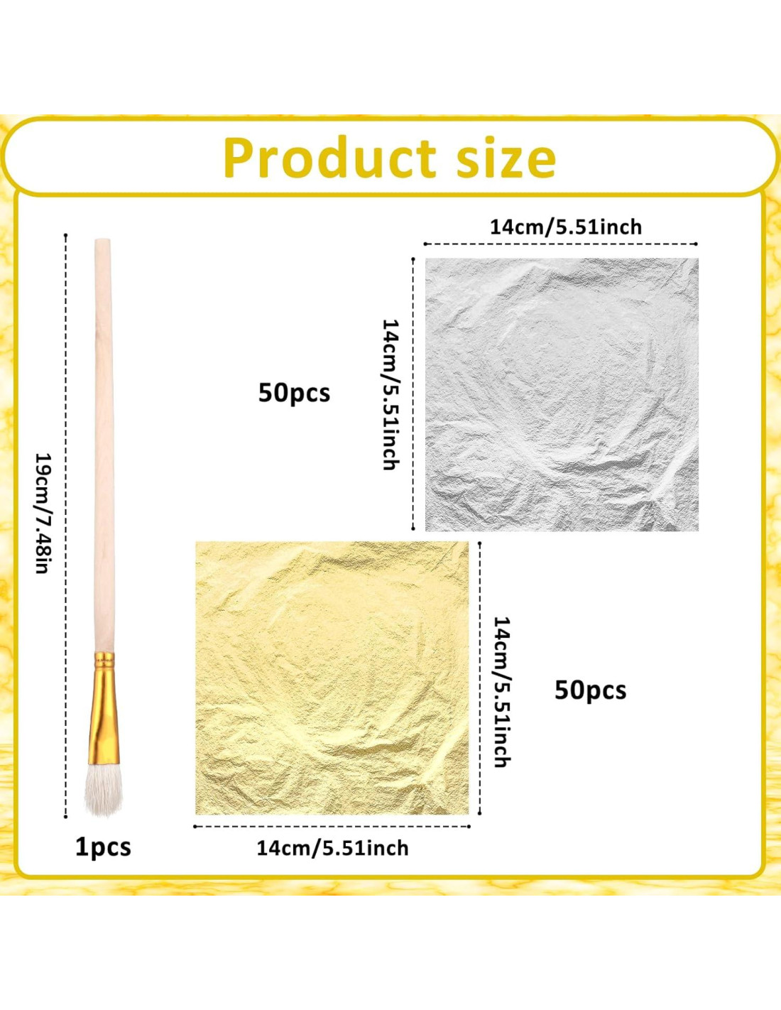 - Foil Dorado y Plateado: Nuestro foil plateado está hecho de foil de cobre, asegurando durabilidad y una superficie brillante. Cada paquete incluye 50 hojas de foil dorado y 50 hojas de foil plateado, perfectas para una variedad de proyectos artísticos. Estos foils son de 14 x 14 cm de tamaño, perfectos para trabajos delicados