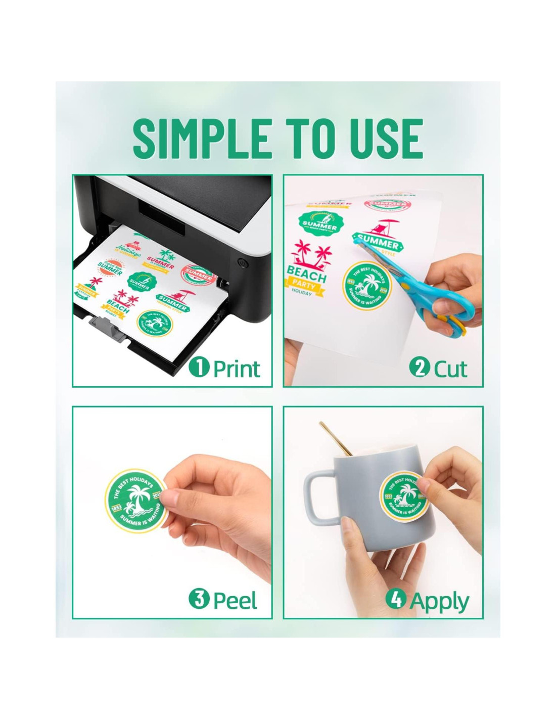 - [FÁCIL DE USAR Y REMOCIÓN SIN RESIDUOS] Para los proyectos de bricolaje, el papel de vinilo es fácil de usar. Solo imprime lo que deseas, córtalos, luego aplícalos a superficies lisas y duras, plástico, vidrio y metal. Este papel de etiquetas de 0.1 cm de grosor puede reducir la tasa de atascos de papel. El vinilo tiene buena adhesión. Si deseas quitarlo, mantendrá la superficie limpia y sin residuos pegajosos.