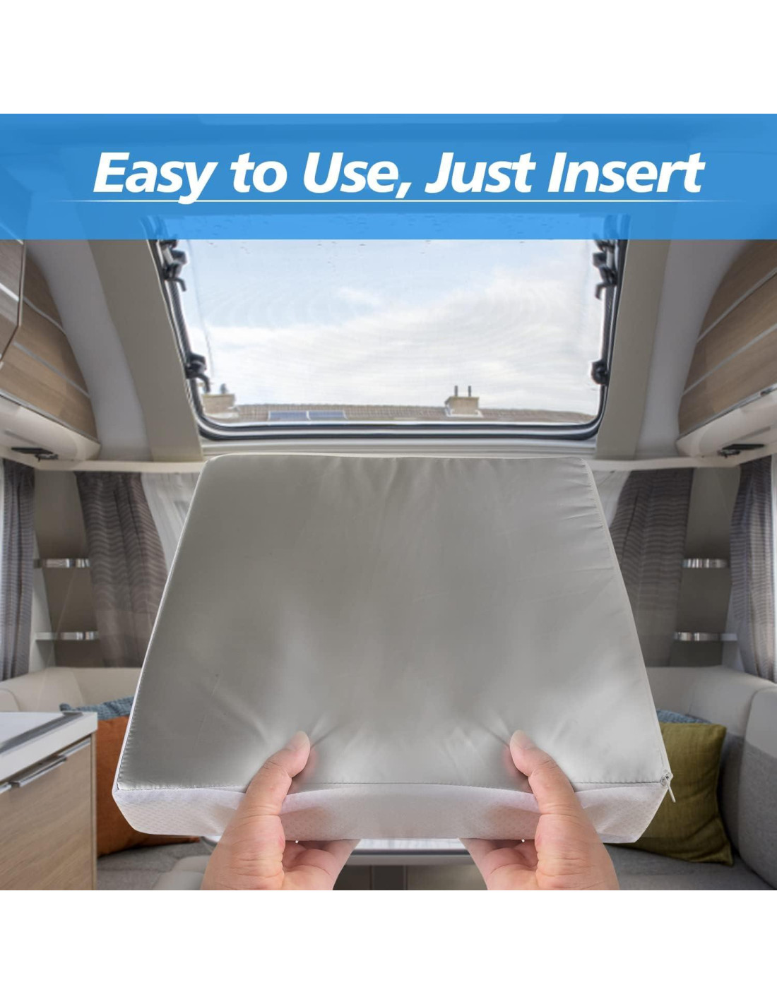 - Se ajusta a claraboyas/ventilaciones estándar de 35.56 cm x 35.56 cm para RV/camper.