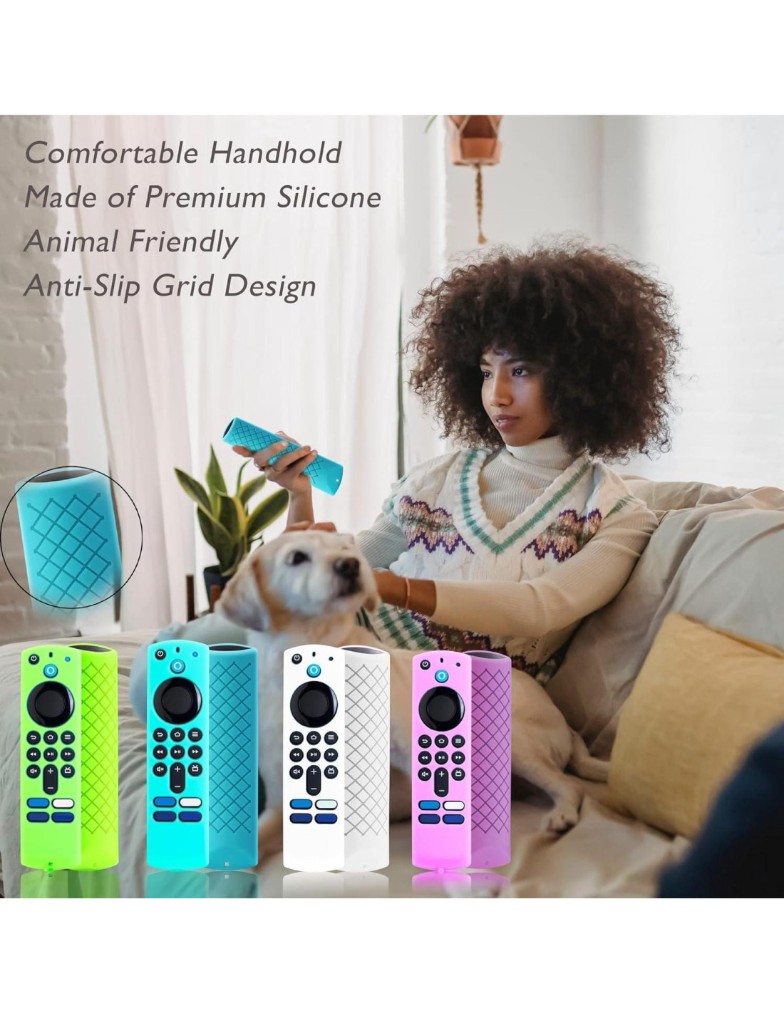 - Ajuste como un traje a medida: - La funda del control remoto Firestick está hecha de silicona premium, es suave y flexible, y los cortes precisos se ajustan perfectamente al control remoto de la TV. Sensación similar a la piel en la mano, cómoda y antideslizante con diseño de textura de cuadrícula en la parte posterior.